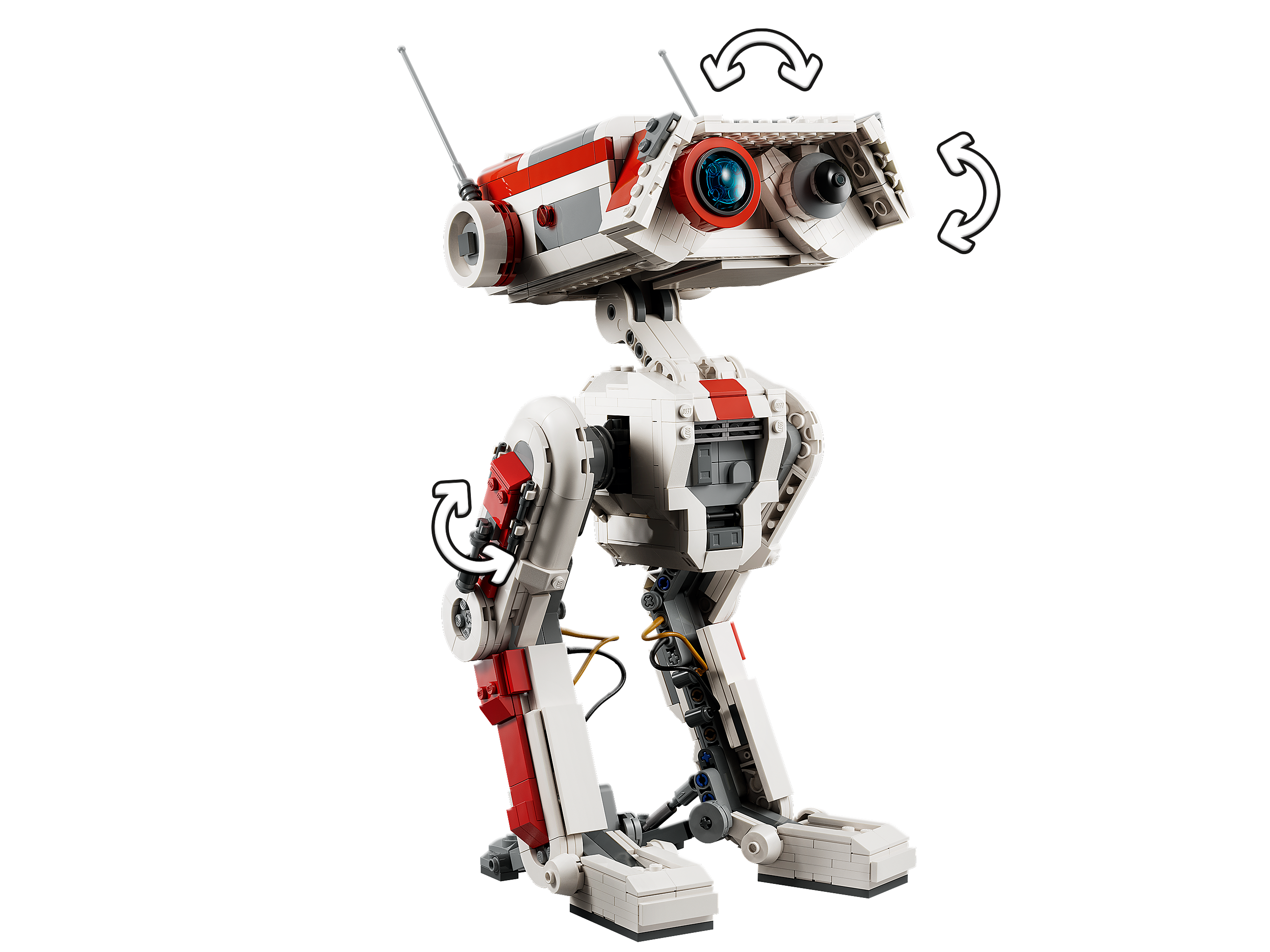 75335 BD-1 es una representación a escala del droide con movimiento en las piernas, la cabeza y las antenas. Al igual que en los juegos, el compartimento del bote de estimulantes se puede abrir para revelar un trío de paquetes de salud. Los botones de la parte posterior que muestran el estado de ánimo de BD-1 también se pueden reorganizar como mejor te parezca.
