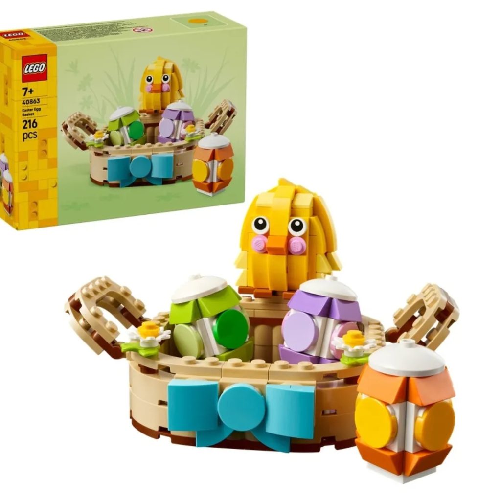40863 Cesta de huevos de Pascua Está compuesto por 216 piezas y su lanzamiento está previsto para el 1 de enero. Presenta un pollito para construir rodeado de huevos de colores en un nido. Además, parece que el set tiene una bisagra para ocultar los huevos dentro del nido.