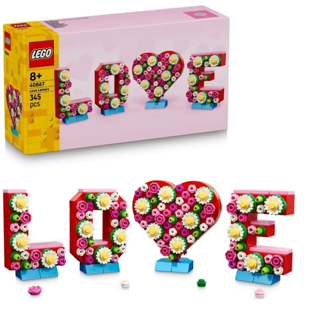 40867 Cartas de amor utiliza flores de diferentes colores y tamaños para decorar algunas letras listas para exhibir que forman la palabra "amor". El juego de 345 piezas está claramente orientado al Día de San Valentín y se lanzará el 1 de enero de 2026.
