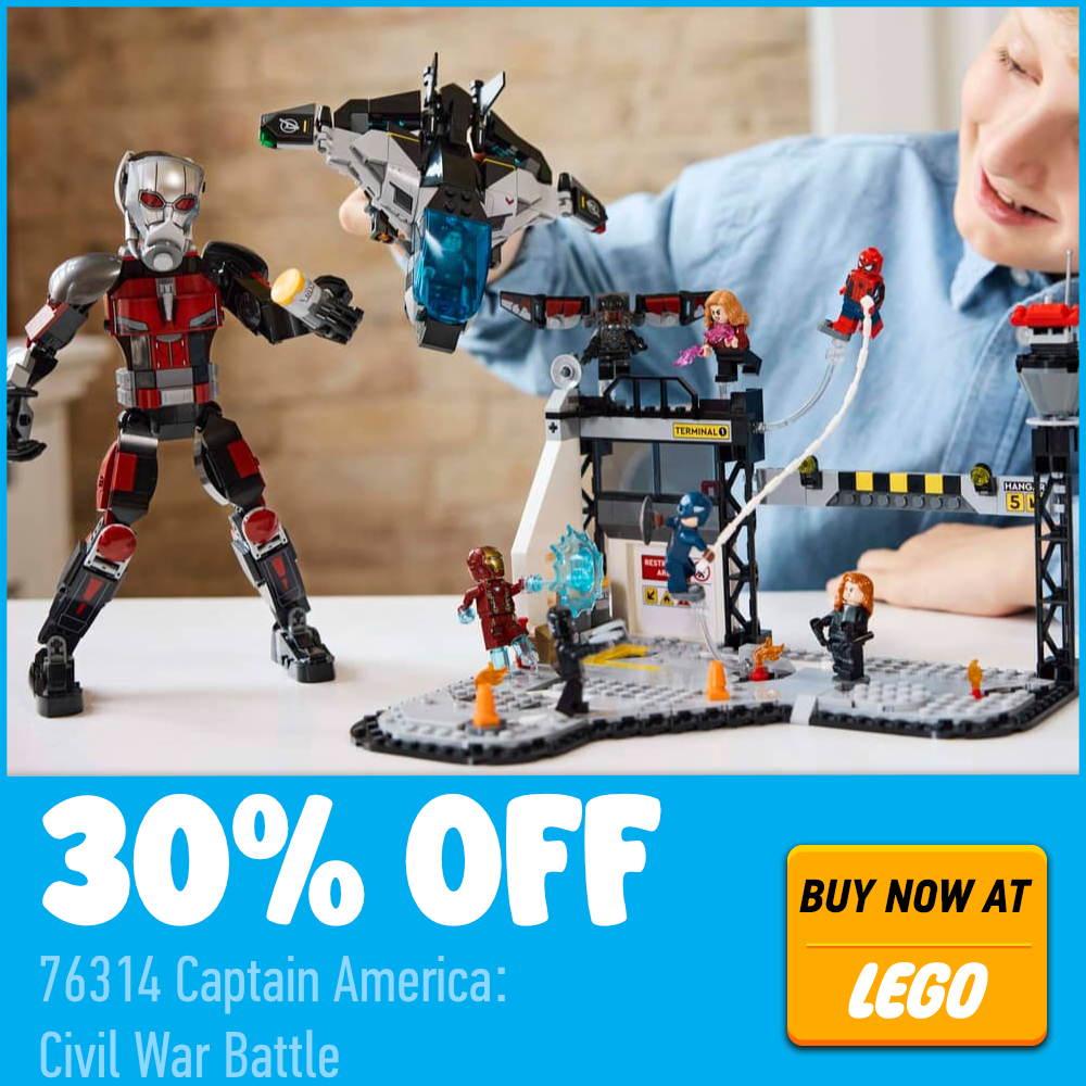 Una entrada inusual en nuestros informes semanales de ofertas de LEGO, la venta actual de la tienda online oficial incluye bastantes construcciones interesantes con descuentos decentes. Esto incluye un 30% de descuento. 76314 Capitán América: Batalla de Civil War, ahora 62.99 libras en lugar de 89.99 libras. El Marvel Este modelo viene repleto de minifiguras y, por su precio, constituye una pieza de exhibición que los aficionados a los superhéroes podrán apreciar.