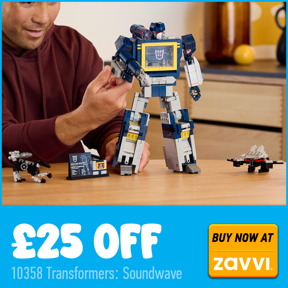 Zavvi solo tiene dos ofertas a tener en cuenta esta semana, pero ambas son importantes. Hay un descuento de 25 libras. 10358 Transformadores: Ondas sonoras, que representa nuestro primer Decepticon de LEGO con múltiples construcciones, un ladrillo de sonido y funciones con las que interactuar.