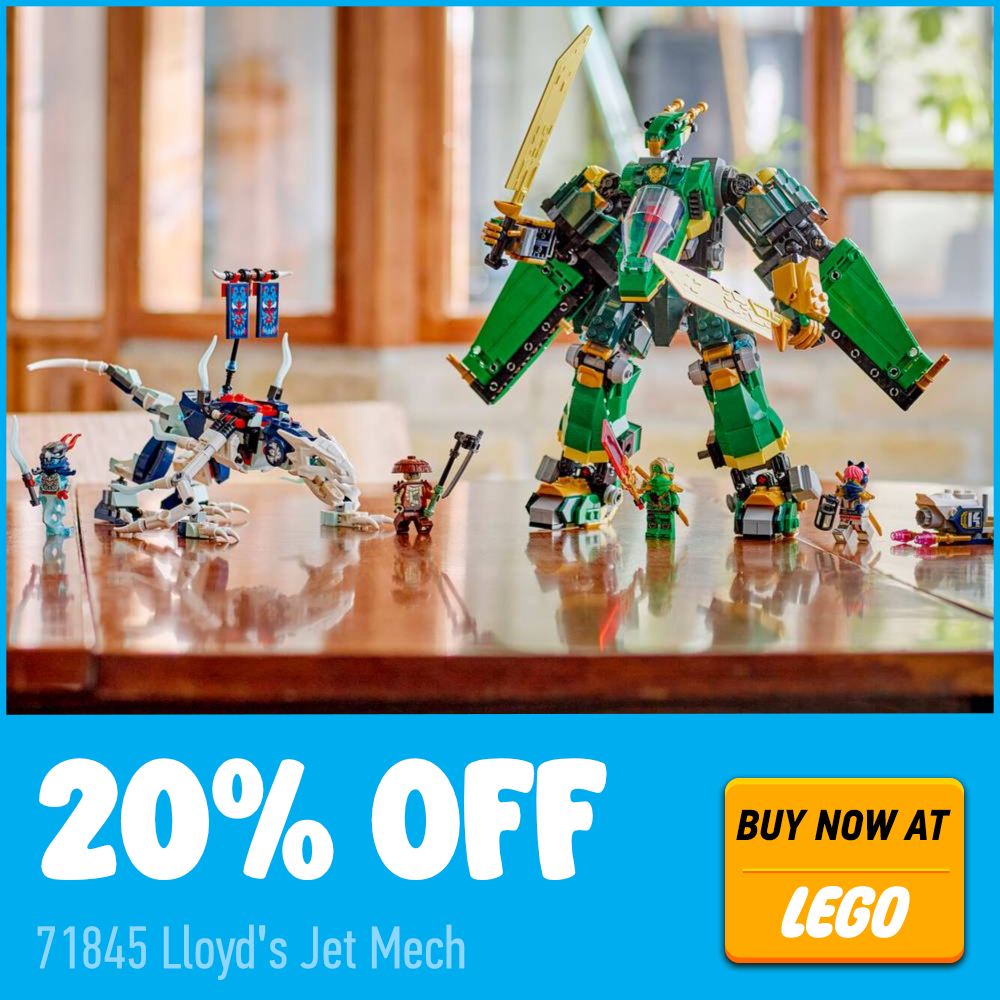 LEGO NINJAGO 71845 Mecánico a reacción de Lloyd Además, tiene un 20 % de descuento en las rebajas de la tienda online oficial. Este robot transformable ha recibido elogios por su funcionalidad única e incluye la minifigura exclusiva de Kur. Está disponible por 71.99 £ en lugar de 89.99 £, y además acumularás puntos LEGO Insiders.