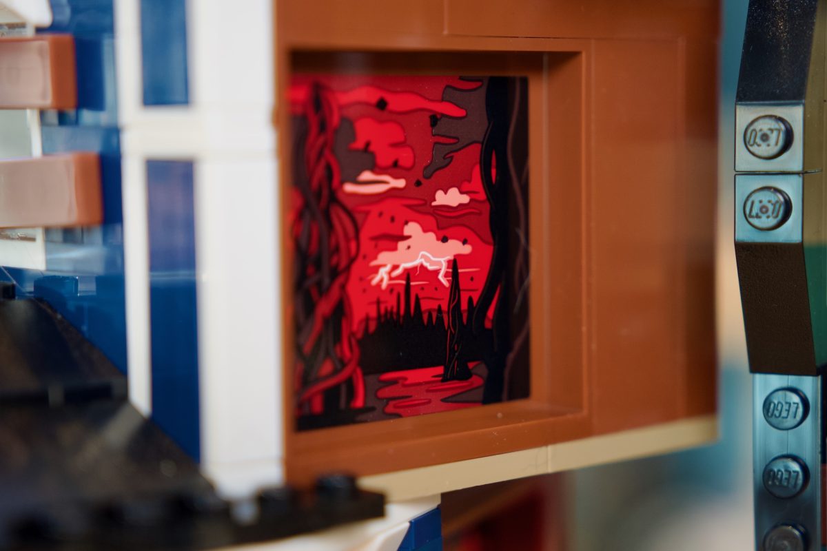 Eso se debe, por supuesto, a que esta no es una casa LEGO cualquiera. Coloca una mano sobre los árboles a ambos lados de la casa y sepáralos, y lo que a primera vista parece una casa de muñecas normal se desarma ante tus ojos para revelar la guarida mental de Vecna. La transformación está magníficamente ejecutada y es fascinante de ver: algunas habitaciones se dividen en dos, otras giran 45 grados, una pared se derrumba y la torre central incluso se eleva. La ingeniería empleada, sin sacrificar en absoluto la fidelidad visual de la fachada, es una de las mejores cosas que verás en un set oficial de LEGO en 2026. ¡Ya está!
