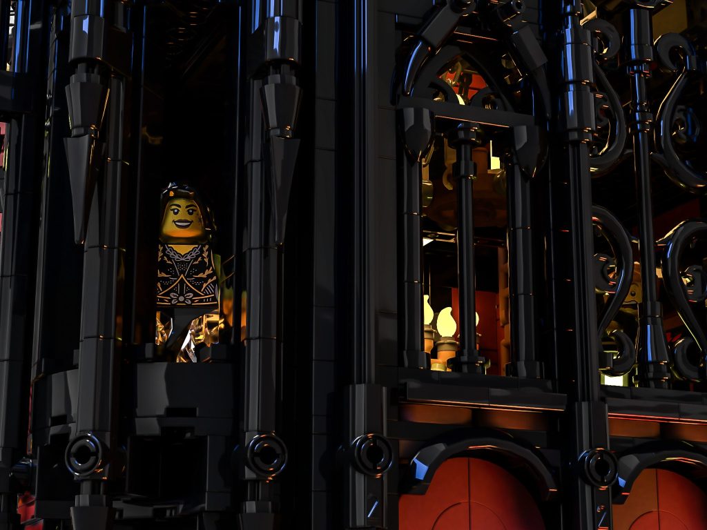 Este tercer proyecto se basa en motivos espeluznantes y arquetipos de vampiros, incluido Drácula de Bram Stoker, evocando un castillo gótico en lo más profundo del corazón de Bucarest. Construido en el mismo estilo que (por ejemplo) 10305 Castillo de los Caballeros del LeónEl modelo puede abrirse para revelar un interior amplio o cerrarse para lograr una vivienda cohesiva y completamente cerrada.