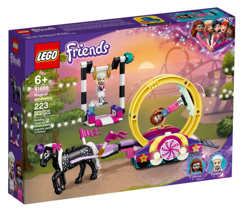 Se ha revelado 41686 Acrobacias Mágicas en LEGO.com junto con una inauguración oficial para el resto de la Friends rango de verano. El juego de 223 piezas incluye dos modelos principales que se centran en sus características de juego giratorio.