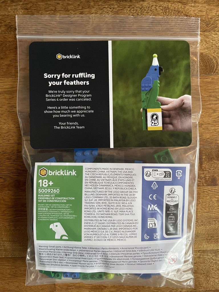 Si uno de estos loros (o algo similar) llegará a algún fanático con un álbum cancelado LEGO Se desconoce el pedido de la Serie 4 del Programa de Diseñadores BrickLink en los próximos días y semanas, o podría estar reservado para quienes realicen compras más grandes. Algunos fans, inmediatamente después de las cancelaciones, informaron haber recibido obsequios simbólicos de atención al cliente, como $25 o $50 en puntos Insiders.