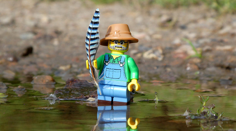 Una minifigura encuentra una pluma.