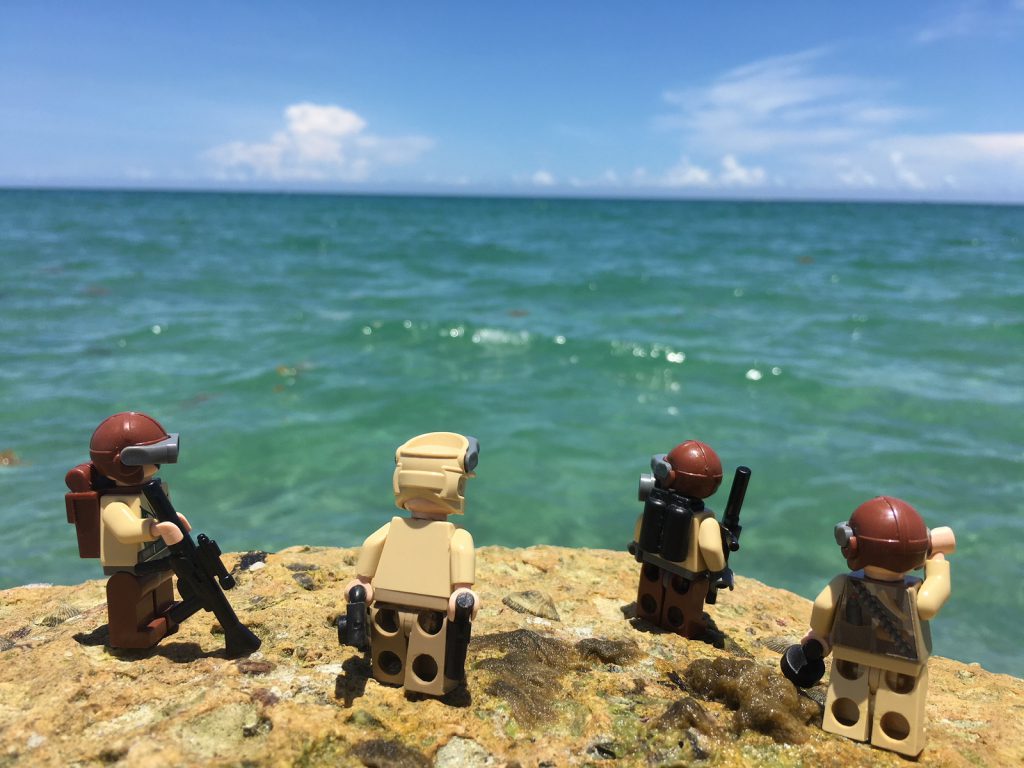 Estas minifiguras inspeccionan su entorno: hay mucha agua.