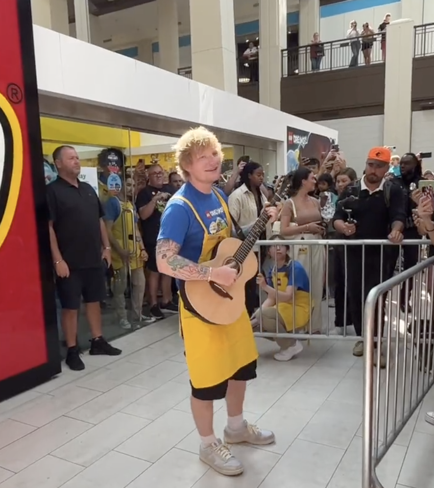 Además de ayudar a los clientes dentro de la tienda, Sheeran también hizo florecer sus otros talentos fuera de la tienda, sacando su guitarra para una actuación para quienes visitaban el Mall of America. Si bien no podemos escuchar qué canciones tocó, nos imaginamos LEGO La casa tenía que presentar.