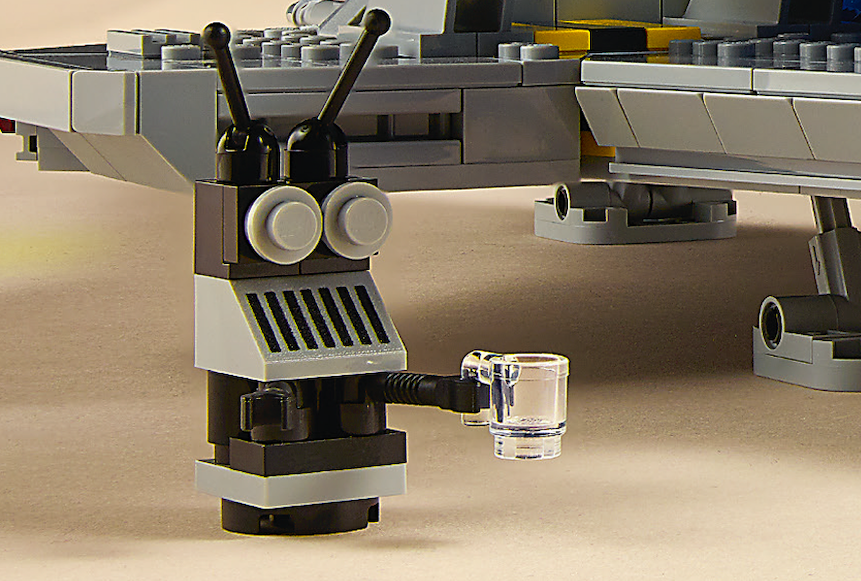 Aunque aparecen cuatro minifiguras en 497 Galaxy Explorer, no tienen compañeros robóticos en su viaje hacia lo desconocido. 10497 Galaxy Explorer cambia eso, haciendo referencia a otro LEGO establecido en el proceso.