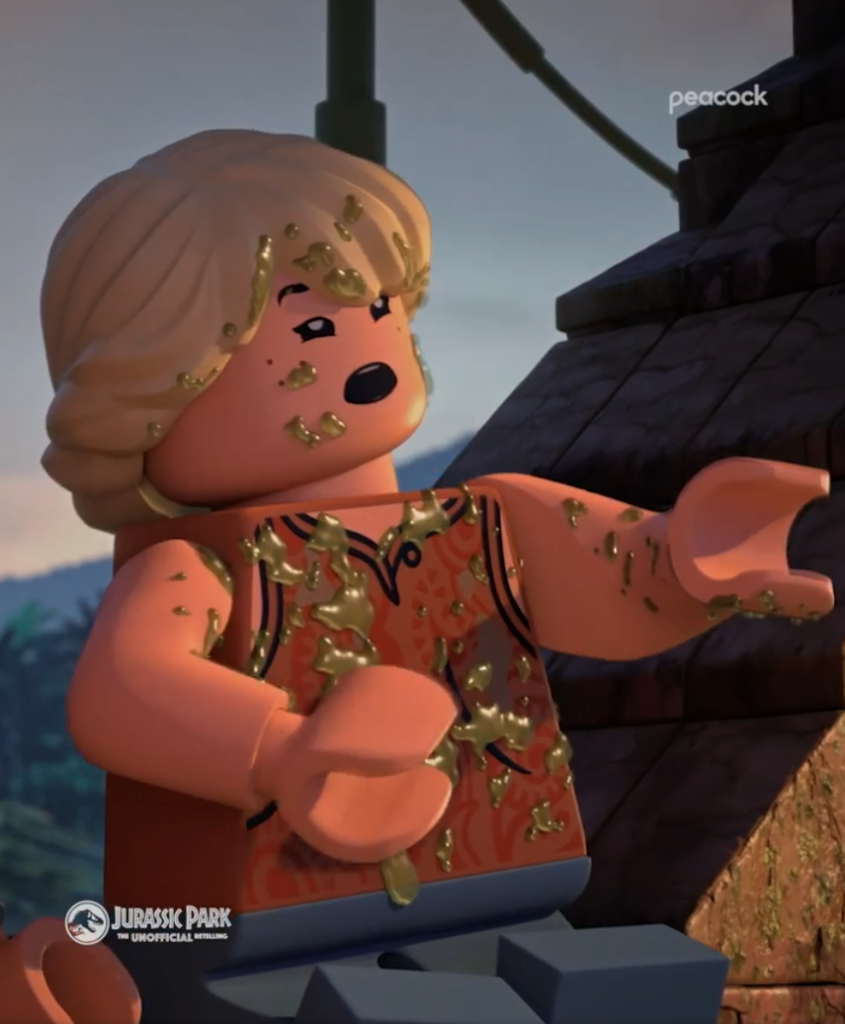 Un elemento que lamentablemente no se reprodujo en ladrillos es el estiércol de dinosaurio, ahora en pantalla en un estilo inquietantemente realista que parece un poco fuera de lugar al lado de las minifiguras digitales y los elementos LEGO, especialmente porque ya hemos tenido una LEGO estiércol de dinosaurio en la vida real.