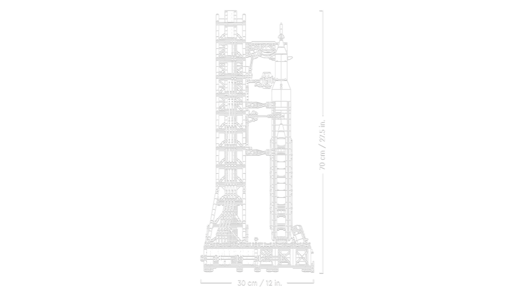 El cohete y la plataforma de lanzamiento incluidos en 10341 NASA ArtSistema de lanzamiento espacial emis juntos pesan nada menos que 70 cm de alto, 27 cm de ancho y 30 cm de profundidad. Eso significa que la torre no está a la escala del Apollo Saturn V de la NASA 2017 de 21309, que mide poco más de 100 cm de altura, pero aún debería mantenerse en exhibición junto a la LEGO GroupEl cohete espacial de mayor tamaño anterior.