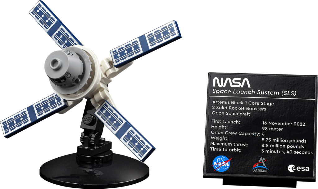 También hay una placa de información impresa, que coincide con el estilo de la del transbordador espacial Discovery de la NASA 2021 de 10283, que todavía está disponible en LEGO.com. El modelo está diseñado para conmemorar el Artprograma espacial emis, que busca enviar humanos de regreso a la Luna mientras se prepara para misiones humanas a Marte.