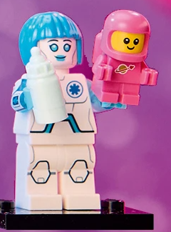Unirse al Spacebaby azul en Serie 71037 24 y la variante blanca en 40712 Micro Rocket Launchpad es un Spacebaby rosa, incluido como parte de lo que parece ser una niñera robot.