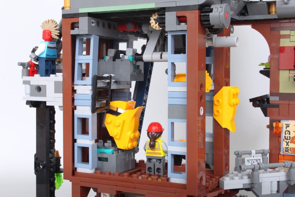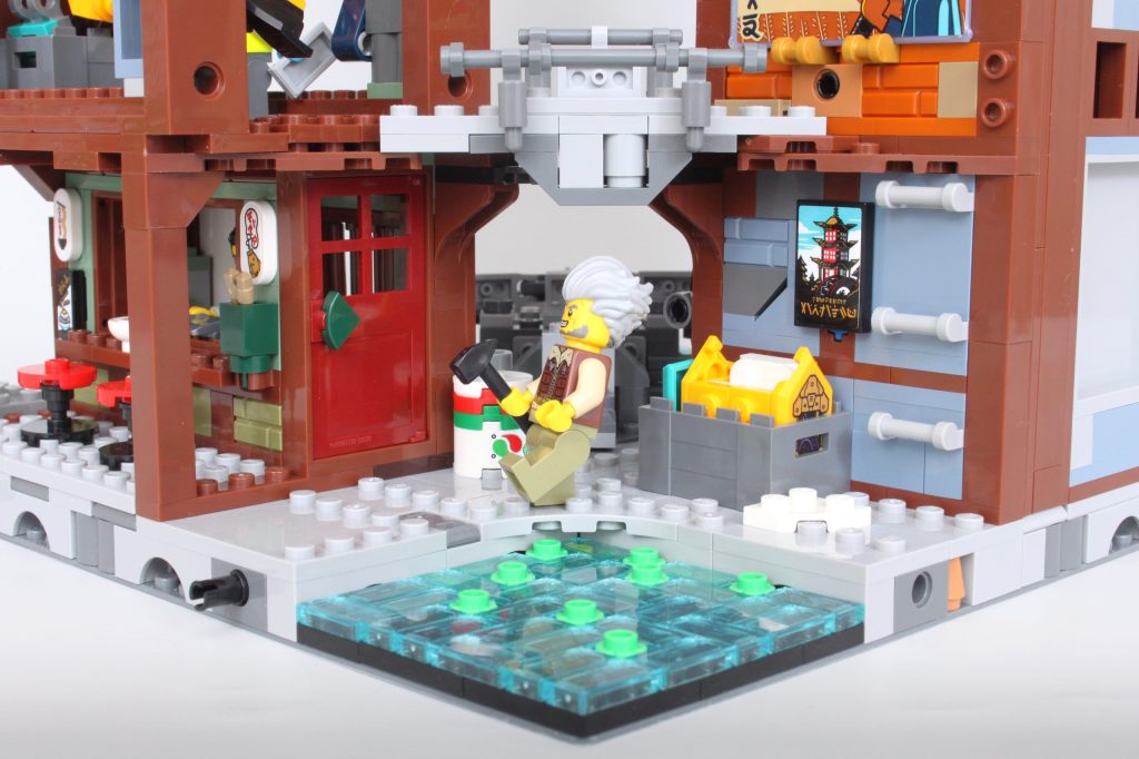 Pasando del nivel del suelo a los pisos superiores, 71837 NINJAGO City Los talleres se vuelven mucho más familiares con interiores extraíbles, un concepto tomado de 71799 NINJAGO City MercadoDado que las características basadas en mechas implican que los distintos niveles de la ciudad deben permanecer juntos, esta es una solución elegante que facilita la admiración de los interiores detallados. De hecho, funciona mucho mejor que la mayoría de los NINJAGO anteriores. City conjuntos e incluso he llegado a preferir este enfoque.