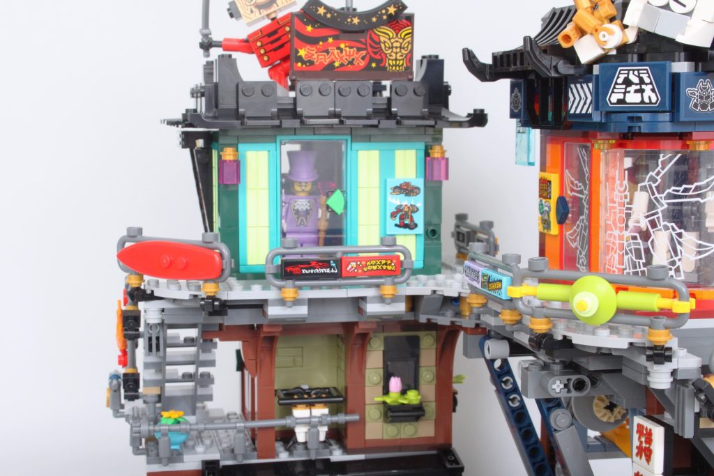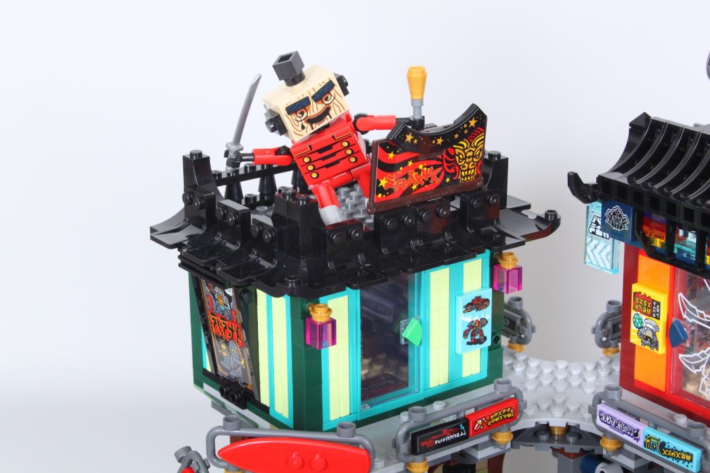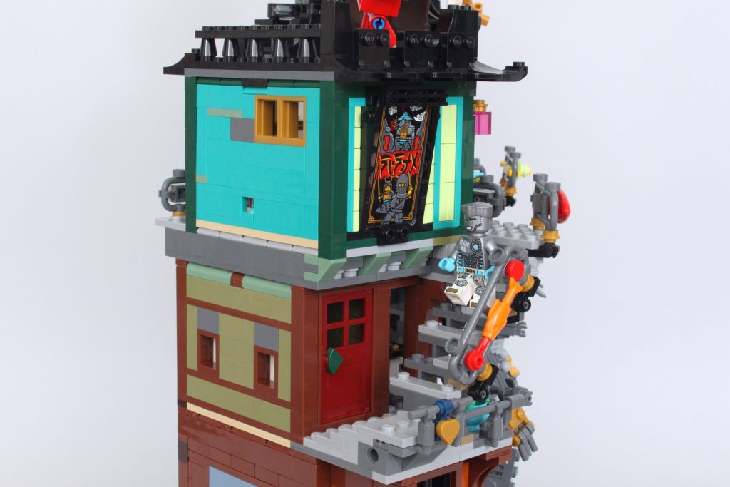 En última instancia, es mucho menos denso que los NINJAGO anteriores. City conjuntos, dejando mucho espacio en el centro del modelo para acomodar el mecha. Ese mecha destaca, más que el teleférico en 71799 NINJAGO City Mercado, y cuando un conjunto ya es tan fundamentalmente diferente en comparación con el resto de la gama, bien podría aprovecharse al máximo introduciendo un robot gigante en construcción.