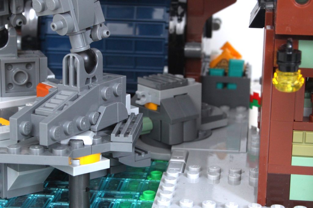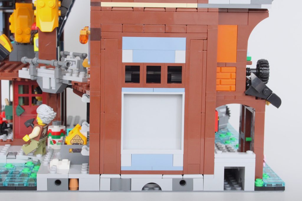 Encontrar espacio para 71837 NINJAGO City Talleres en el actual NINJAGO City La visualización no es imposible, a pesar de ser un módulo de tercera esquina, ya que encaja perfectamente entre 71799 NINJAGO City Mercado y 71741 NINJAGO City Jardines. Es una entrada sorprendentemente alta a la gama, gracias en gran parte a la grúa en la parte superior.