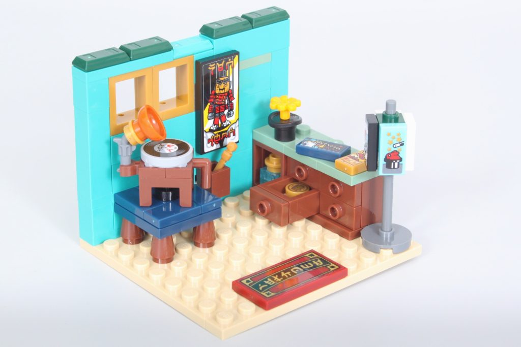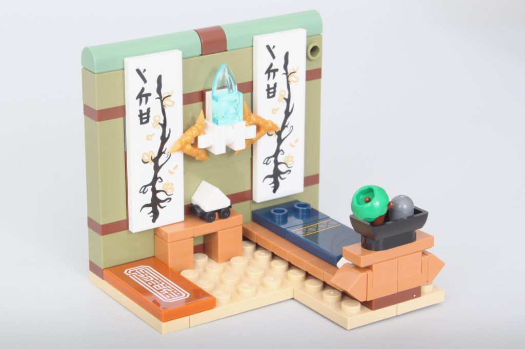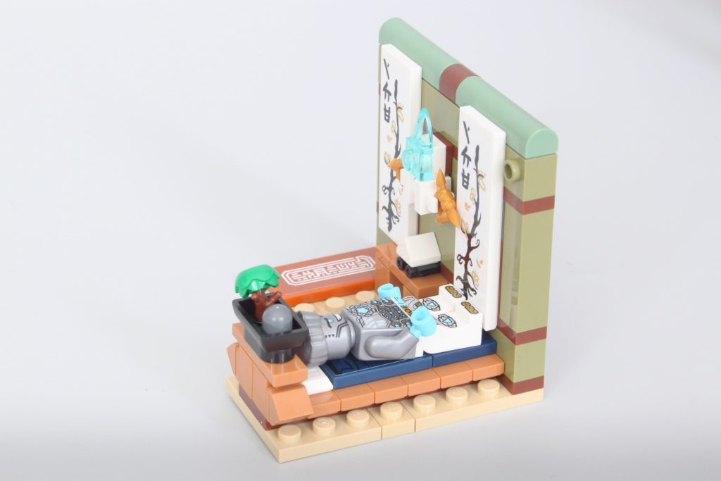 El apartamento de Zane y la tienda de maquetas de mechas NINPLA son mis favoritos gracias a las referencias al tema y a la serie animada, además de una construcción de bonsái increíblemente pequeña. La decisión de basar la tienda NINPLA completamente en... 71821 Robot dragón titán de Cole También es un excelente momento de sinergia.