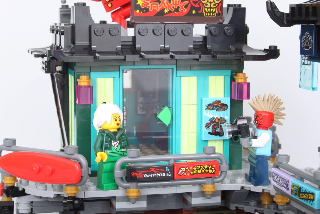 Es una forma única para NINJAGO City Y en sí mismo no es una mala idea, pero es uno de los varios compromisos que se hicieron para el mecha que, al combinarse, impactan seriamente la estructura general de la ciudad. Como era de esperar de LEGO NINJAGO. City En cuanto a la gama, las referencias a la historia de LEGO y NINJAGO son exquisitas, aunque se encuentran completamente en pegatinas con pocas impresiones a la vista; al menos algunas cosas no han cambiado.