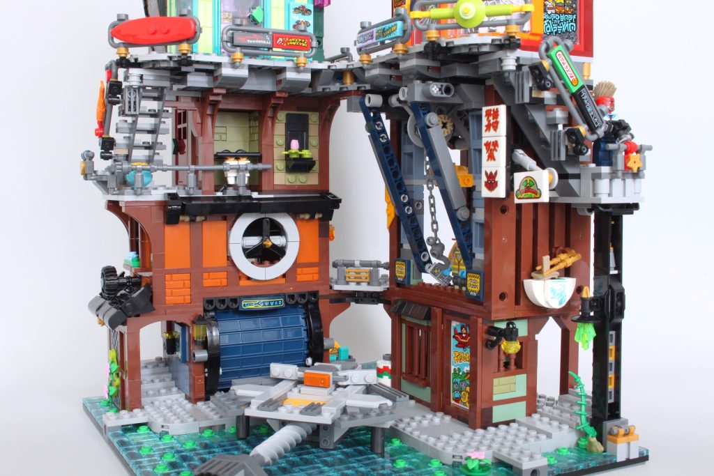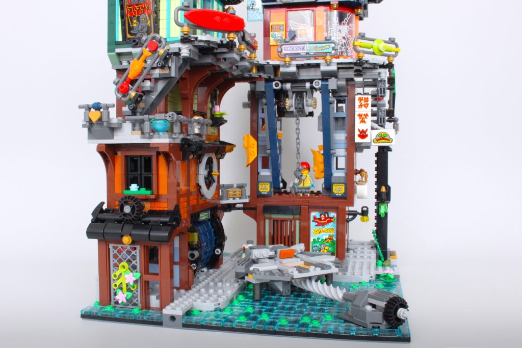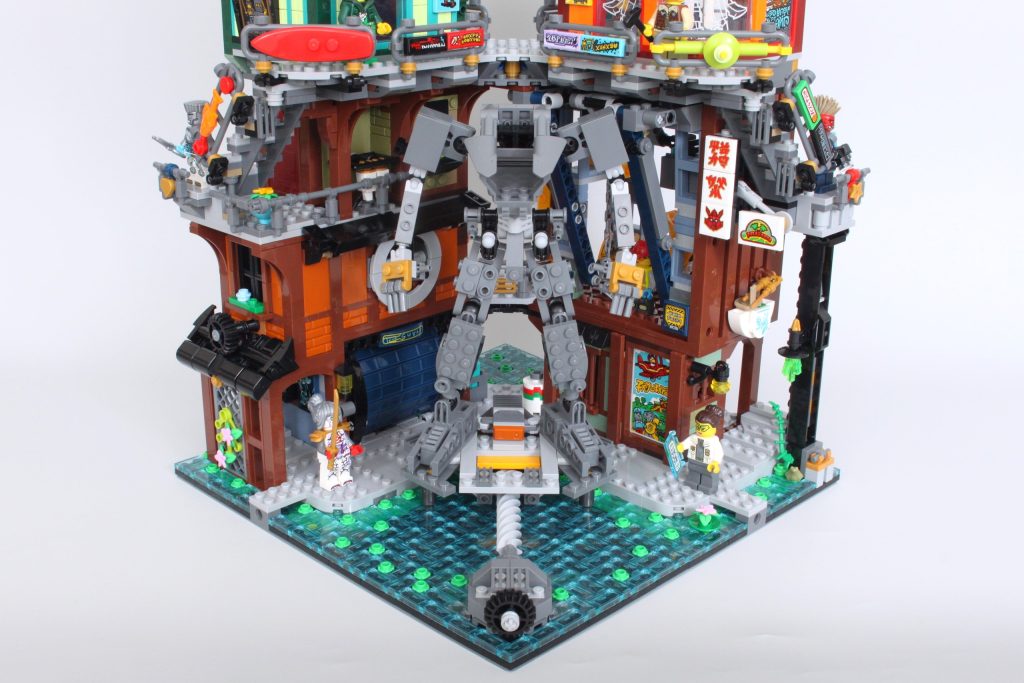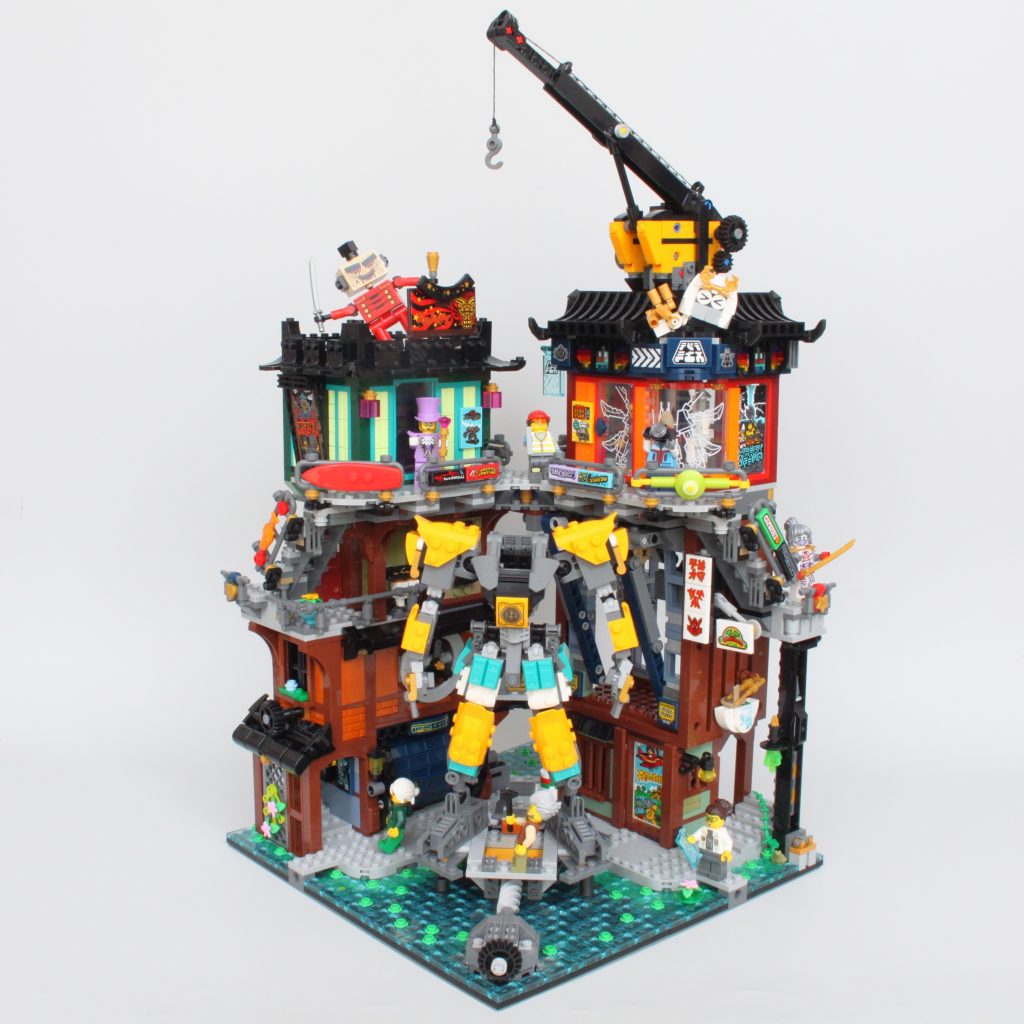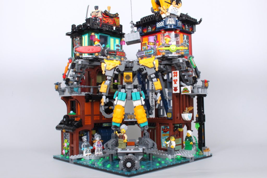 Es un concepto drásticamente diferente para NINJAGO City, pero cuando no estás intentando operar las grúas y simplemente estás admirando el modelo junto a los otros cuatro, la integración del mech hace maravillas.