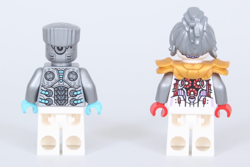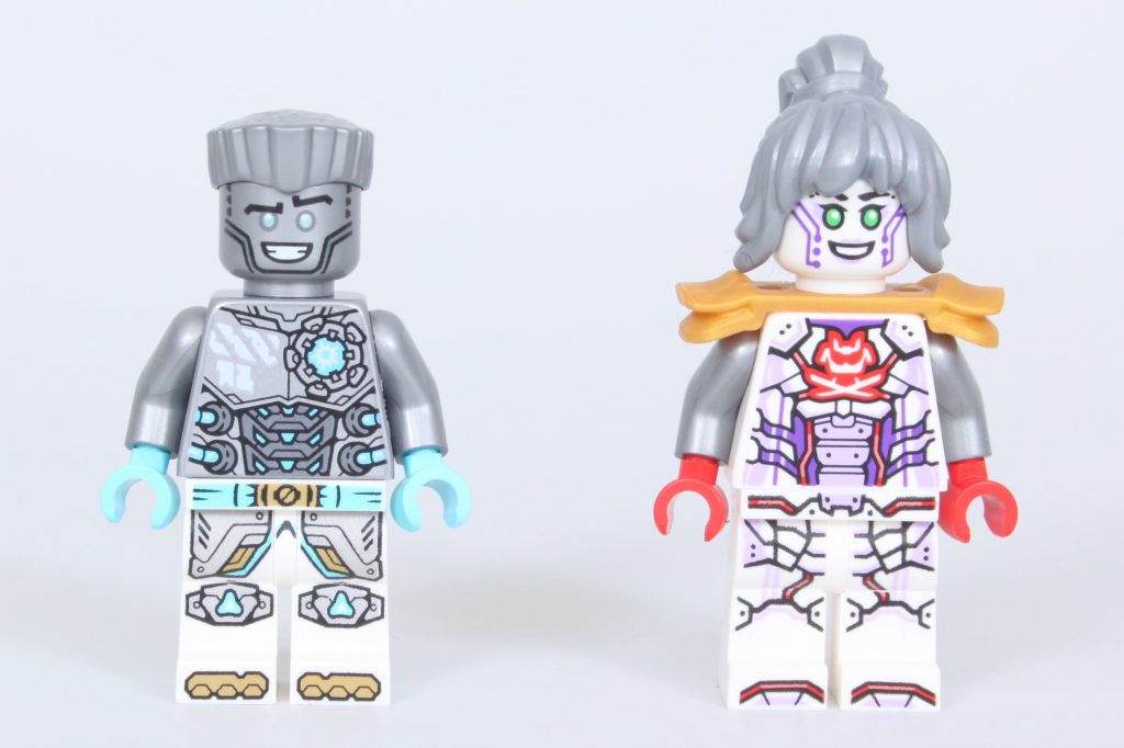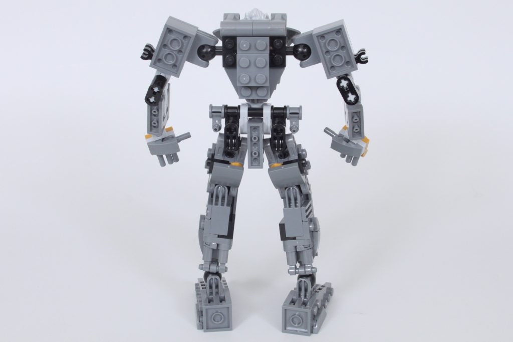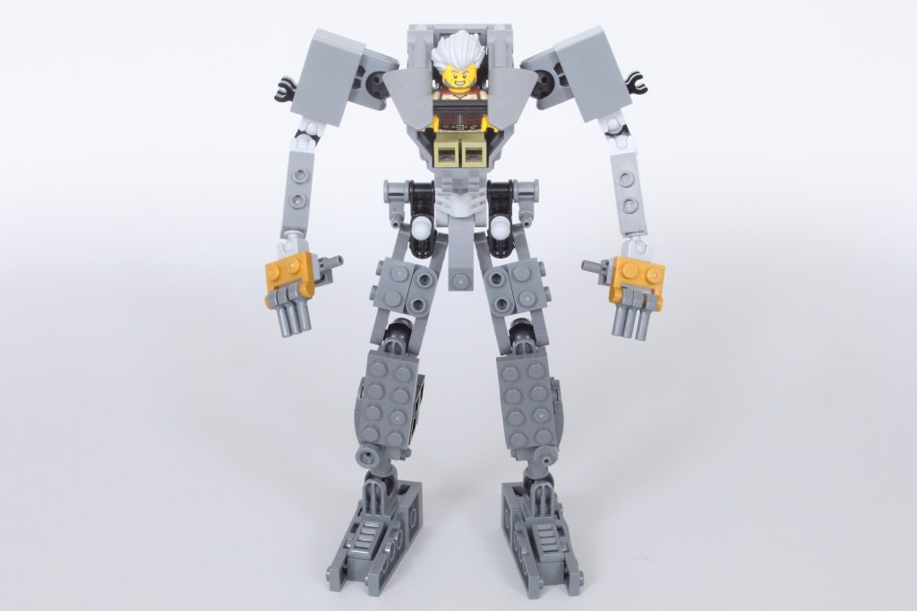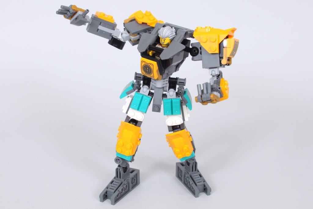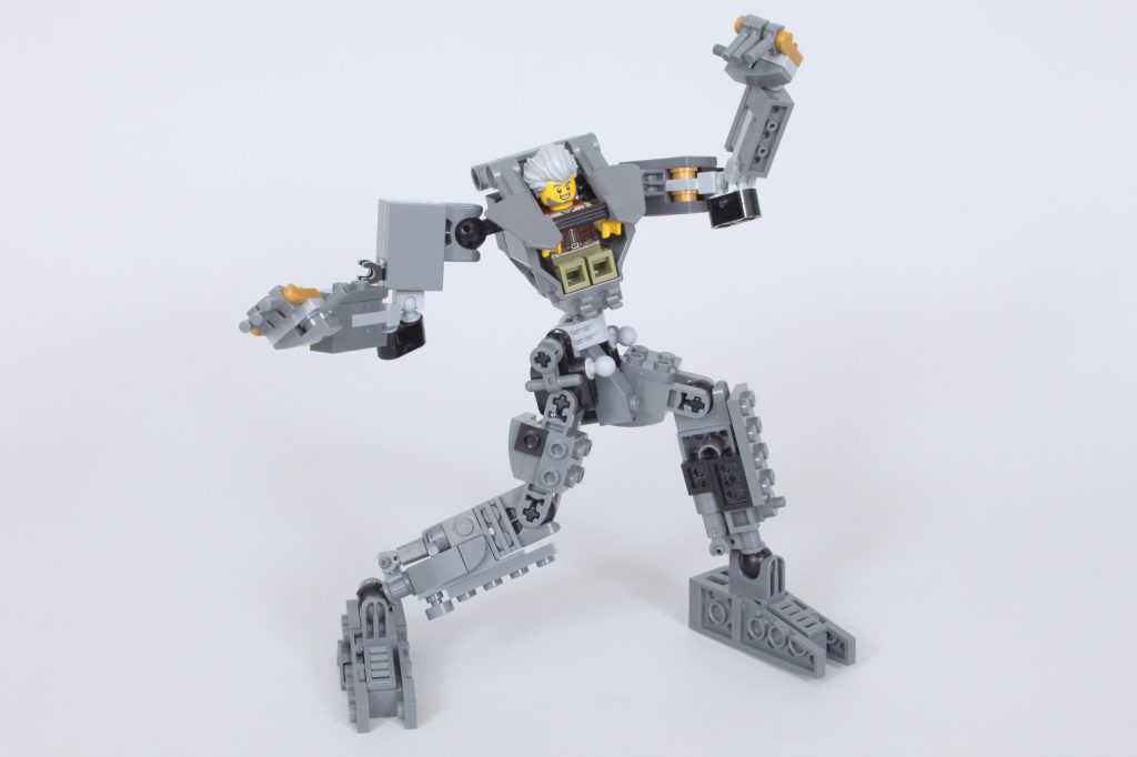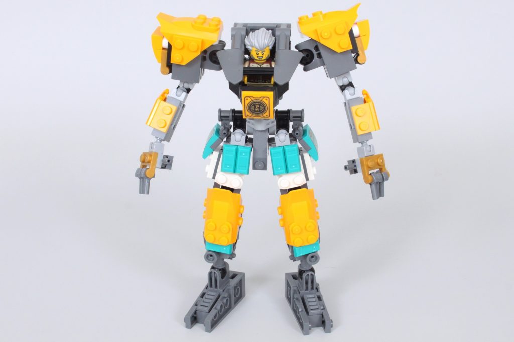 El mecha en sí es uno de los mejores de NINJAGO, ya que prescinde de la cabeza innecesaria por una forma muy diferente a la de la mayoría de los mechas de NINJAGO. Tanto su estructura básica como su versión blindada están repletas de detalles y posibilidades de poses. Recuerda mucho a LEGO. Ideas 21109 Exo Suit: uno de los elogios más generosos que se le pueden hacer a un robot LEGO.