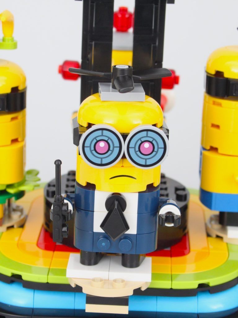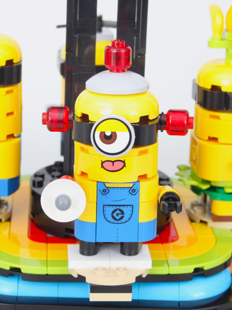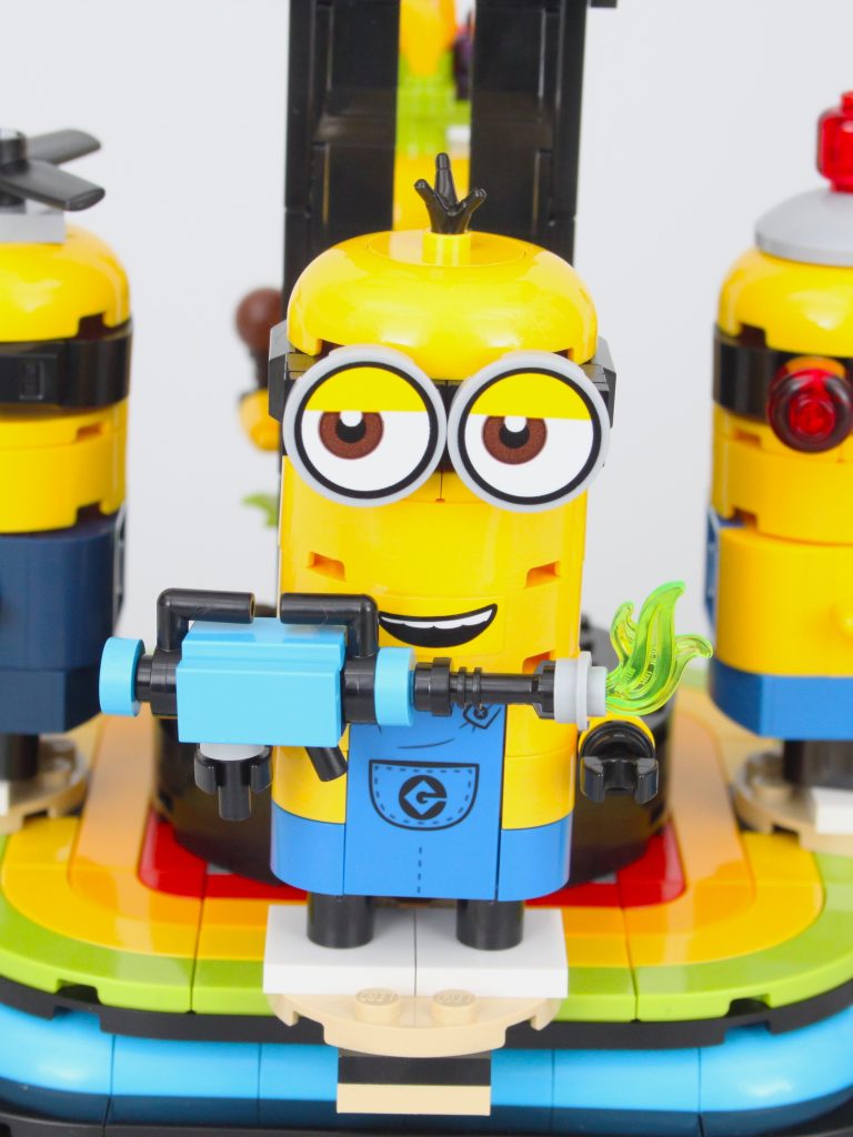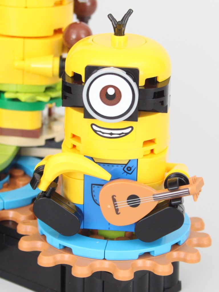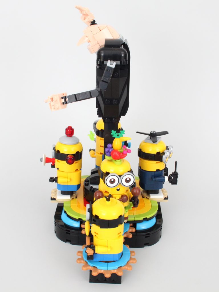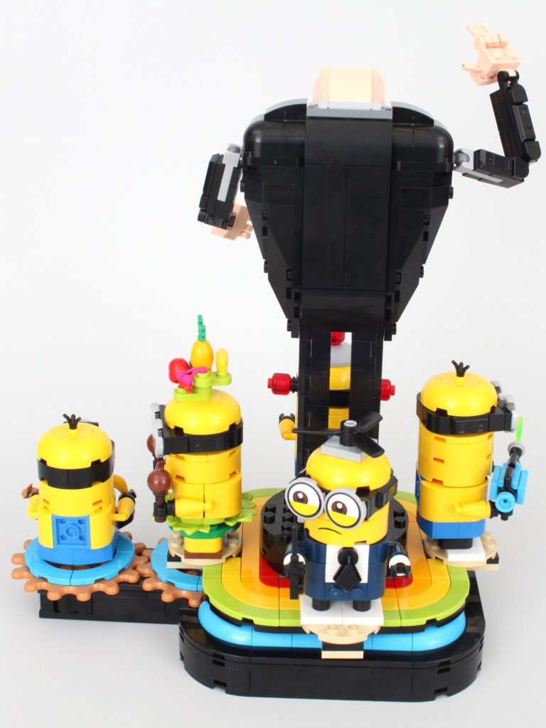 Aparte de la atracción principal – Gru – la característica principal de 75582 Gru construido con ladrillos y Minions es un tocadiscos que puede hacer girar cuatro de los Minions alrededor de Gru con el quinto actuando como una manivela. Es un mecanismo sencillo pero que funciona bien y permite apreciar cada uno de los componentes incluidos. Minions.
