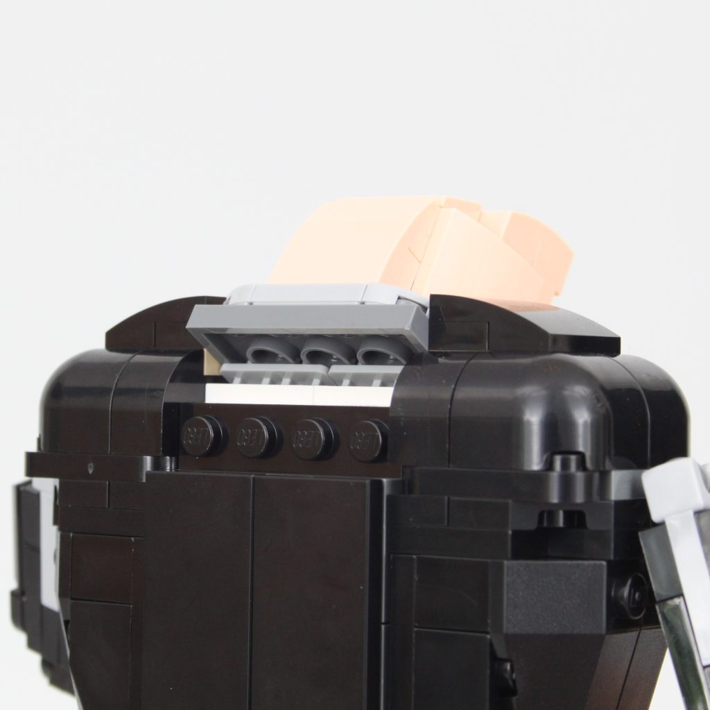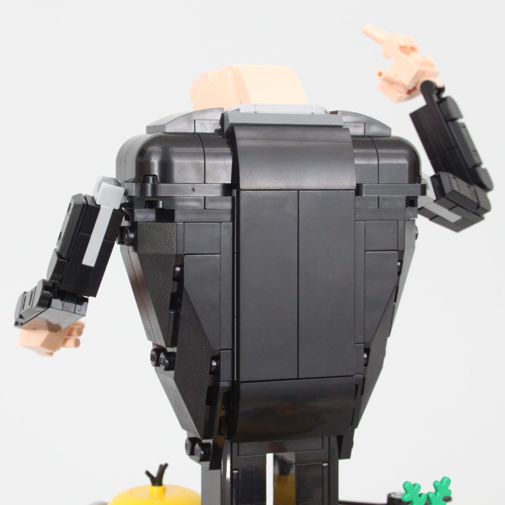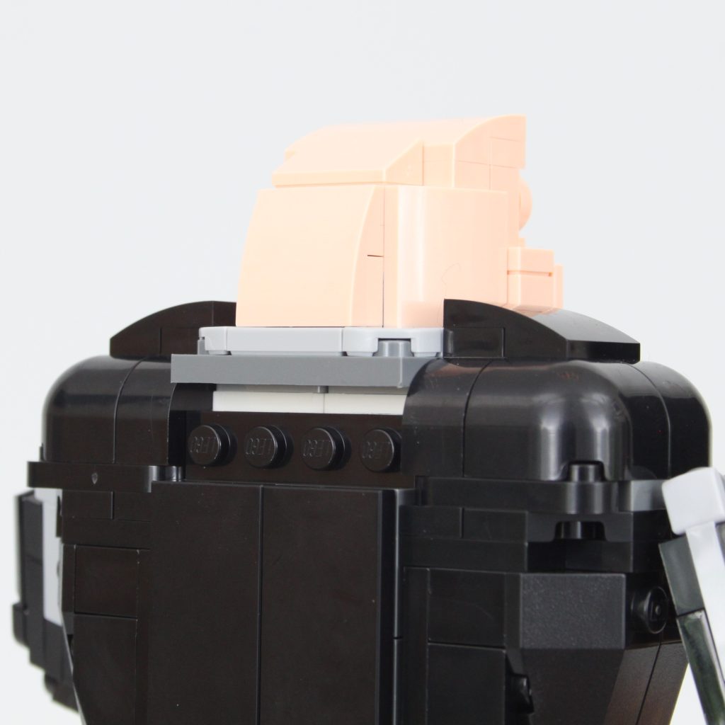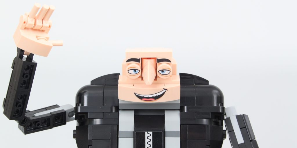 La cabeza de Gru es, sin duda, la parte más interesante del set. Es un excelente ejemplo de cómo se pueden usar elementos LEGO específicos de forma interesante y cómo la perspectiva también puede mejorar la apariencia de una construcción. Si bien quitarle una pieza de la espalda permite inclinar la cabeza hacia arriba, eliminando así la curvatura de Gru, los huecos alrededor de la nariz se hacen mucho más visibles. Es mejor dejarla y aceptar la curvatura tal como está diseñada oficialmente.
