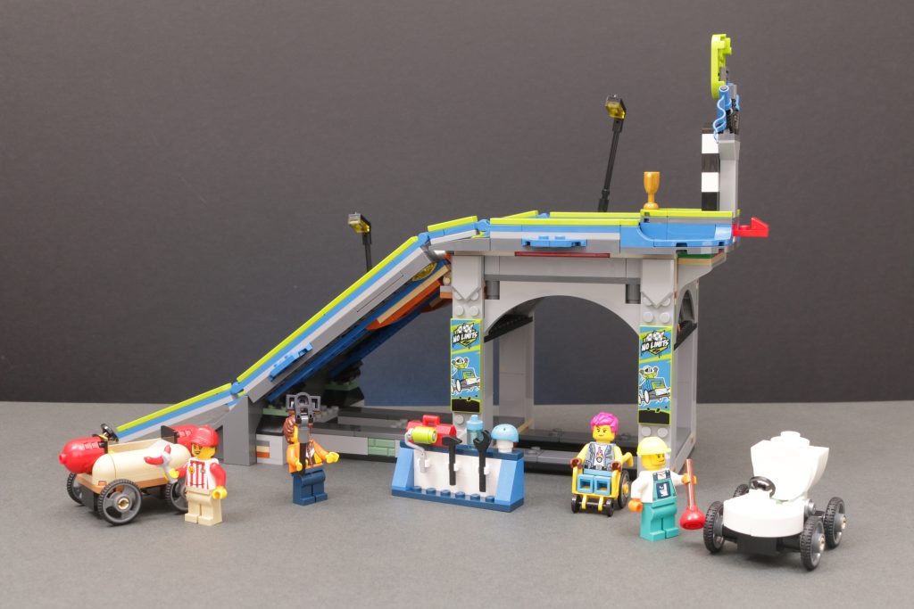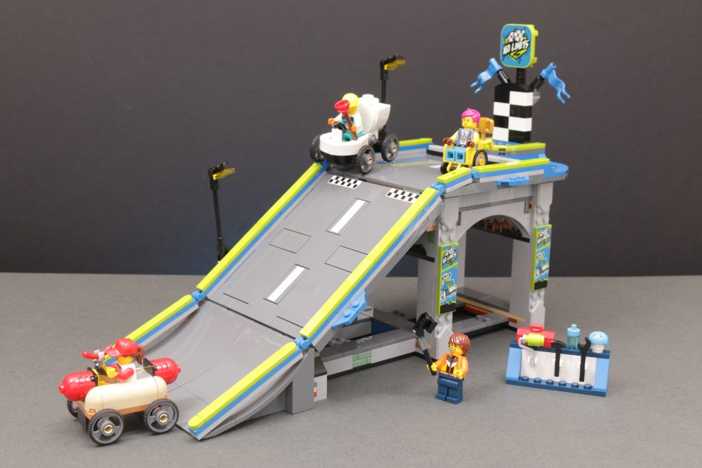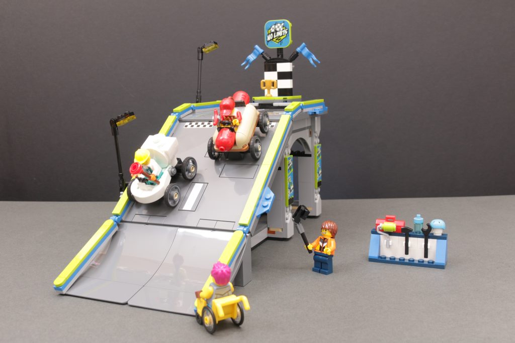 Los pequeños karts temáticos tienen un diseño lindo y divertido, pero aún no estamos del todo convencidos del concepto como para considerar un conjunto como 60460 Sin límites: pista de rampa para autos de carrera Buena relación calidad-precio. A pesar del nombre, este set tiene sus limitaciones, principalmente en cuanto al presupuesto. Sin embargo, una de las claves de este set es que muestra a los constructores de ciudades LEGO cómo usar las nuevas piezas de carretera para añadir vías elevadas a su trazado, siempre y cuando se pueda reducir un poco la inclinación.