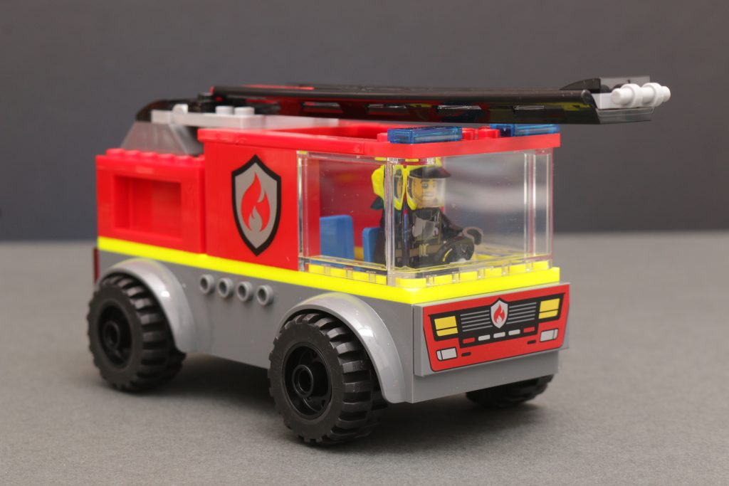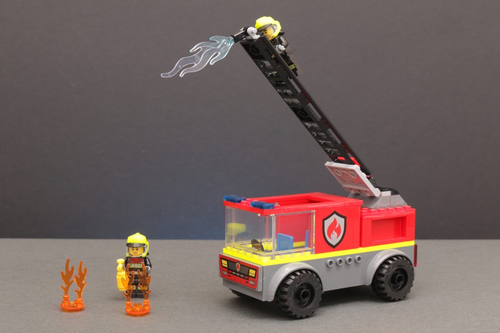 La naturaleza cuadrada, el bajo número de piezas y la recomendación de edad de 4 años o más explican el razonamiento detrás 60463 Camión con escalera de incendiosCon asientos en el interior para los bomberos y una gran escalera que se puede subir y bajar, esta es una excelente introducción a LEGO para los constructores más jóvenes. Sin embargo, no pienses demasiado en la practicidad de intentar apagar el incendio en el suelo con una escalera elevada.