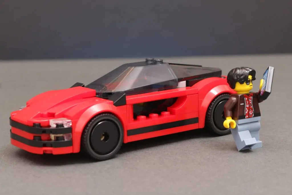 Un roadster barato y alegre en color rojo brillante con un gran parabrisas y algunos de esos Speed Champions piezas de carrocería para delinear la parte trasera del vehículo, hay mucho trabajo en 60448 Coche deportivo rojo Eso le da una buena relación calidad-precio por menos de 10 £. Con la minifigura en su teléfono también, hay muchas razones para cualquiera de tus 3,000 LEGO City agentes de policía pararon este llamativo coche para comprobar la licencia.
