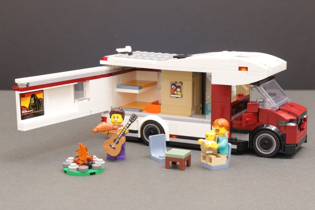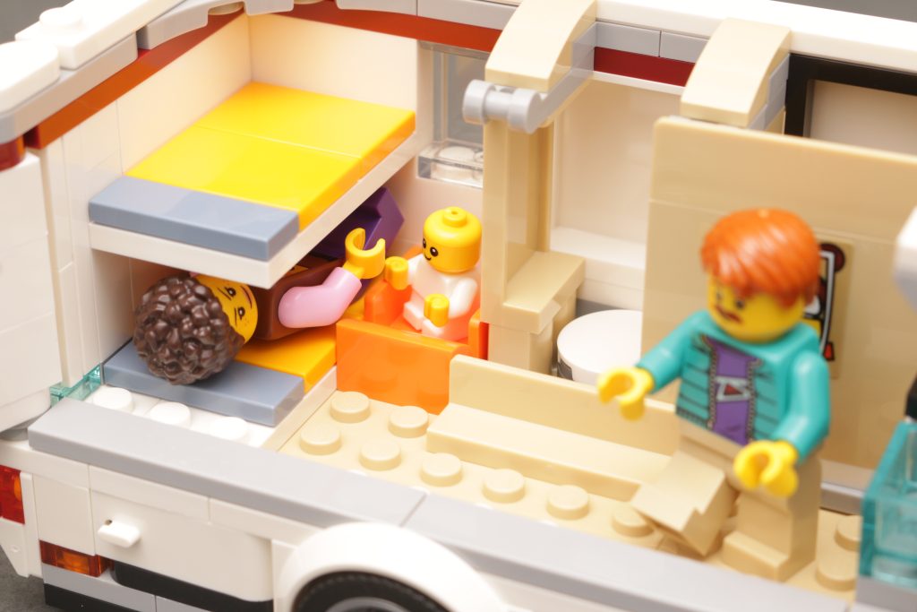 Acabo de construir la autocaravana hoy y fue una construcción muy divertida. Entre las características excelentes se incluyen la puerta corrediza del baño y las conexiones de electricidad y agua ocultas en el exterior por pequeñas puertas de automóvil. Lo único es que su brillantez en este tamaño me hace desear una autocaravana Creator o incluso Icons, de mayor tamaño y alcance. Siempre compro las caravanas y vehículos recreativos Lego, así que espero que pronto aparezca un juego de automóvil y caravana.