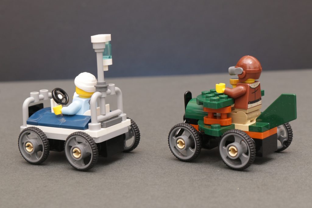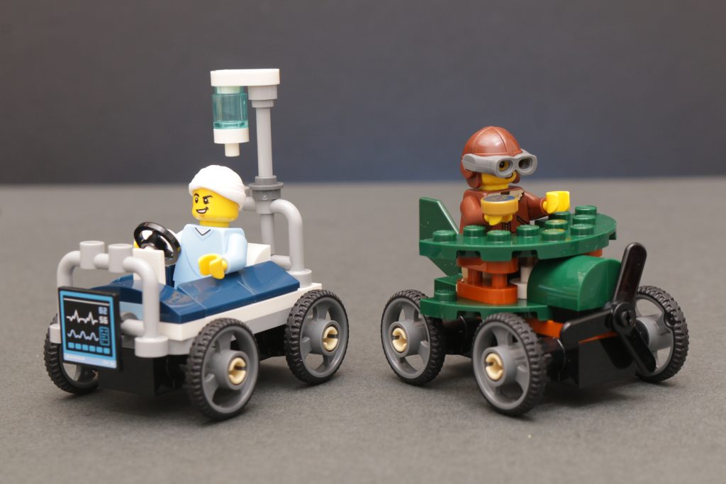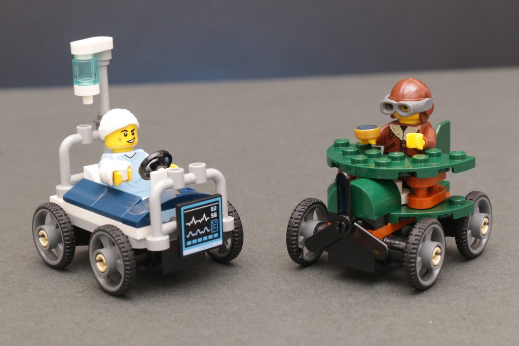 Esta subcolección de karts de carreras funciona mejor en el nivel económico y de fácil acceso como 60459 Paquete de carreras de coches de carreras: avión contra cama de hospital, donde podrás divertirte un poco con los corredores temáticos y conseguir dos minifiguras únicas. El piloto tiene un diseño genial en particular.