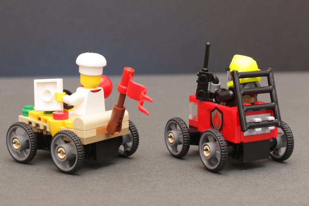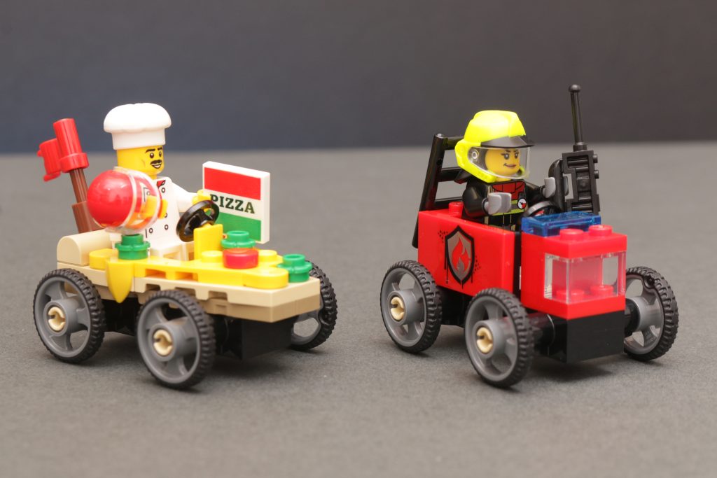 Basando pequeños karts de carreras en temas y personajes específicos de LEGO City es una buena idea que se traduce bien en el extremo inferior del presupuesto y Paquete de autos de carrera 60458 Pizza vs. Fire Truck es un gran ejemplo. El camión de bomberos más sencillo tiene sentido, pero es el coche de carreras con temática de pizza el que muestra el potencial más amplio y la diversión de estos pequeños karts, si la subcolección continúa.