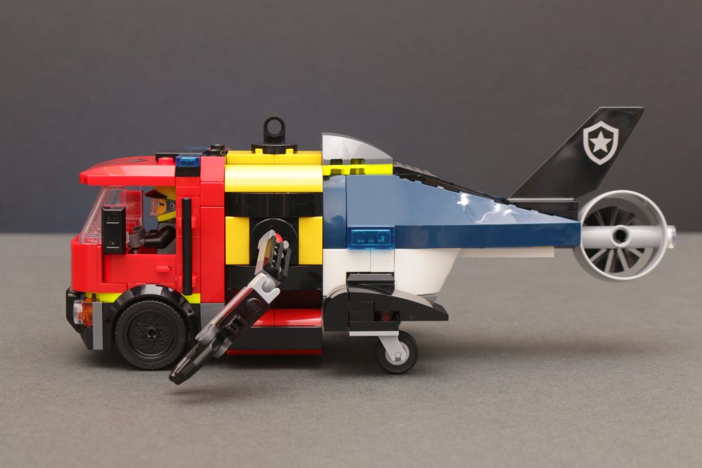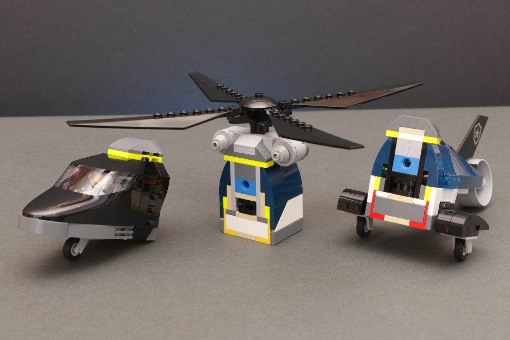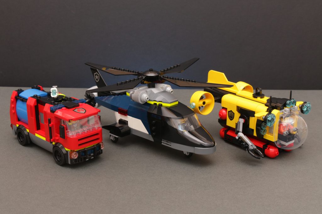 Es un primer intento de modularidad para los constructores más jóvenes y es una característica de juego fácil y muy duradera que ofrece un giro a lo convencional para cualquiera que ya tenga experiencia práctica con cualquiera de estos vehículos y quiera algo diferente. Si es tu primer camión de bomberos, submarino o helicóptero, busca en otro lado porque hay un juego limitado con cada vehículo como algo propio y, al mismo tiempo, el precio no es el más barato aquí, pero ambos aspectos se explican por las construcciones absolutamente sólidas que ofrece cada uno de los tres modelos. No hay nada hueco en el interior de ninguno de ellos, principalmente para que se puedan desmontar y volver a montar varias veces.