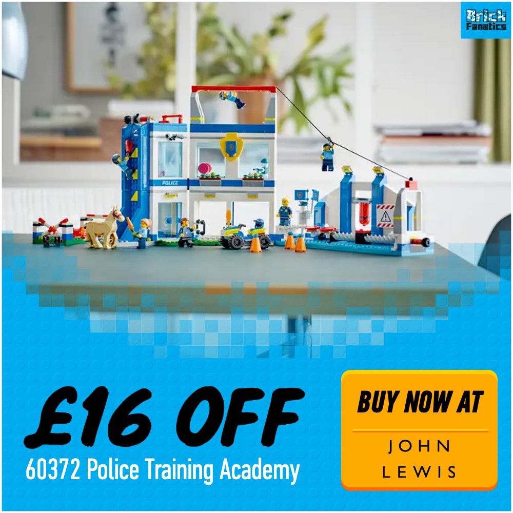 Si realmente desea desarrollar el mundo de sus agentes de policía, no busque más que 60372 Academia de formación policial, reducido en £16 a solo £63.99. Con 823 piezas, la imponente academia tiene muchas oportunidades de juego, desde la carrera de obstáculos de entrenamiento de cadetes hasta las barras y la tirolesa, e incluso una academia de equitación.