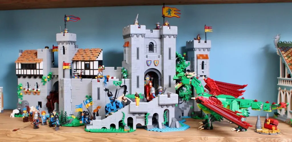 Comparación entre LEGO 31161 Dragón Medieval, 10305 Castillo de los Caballeros del León y 21343 Pueblo Vikingo