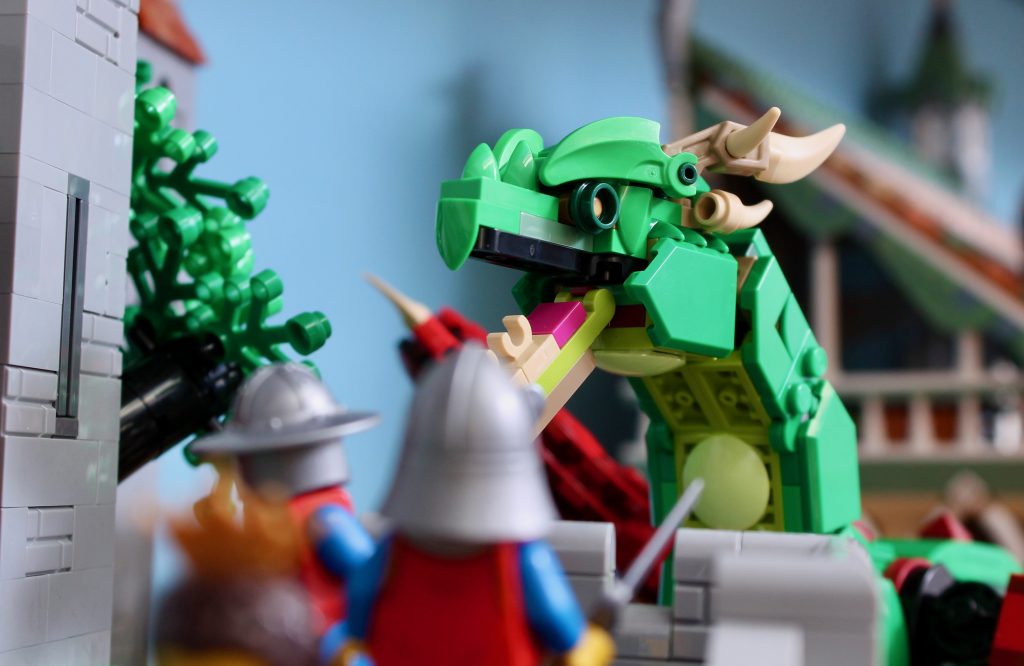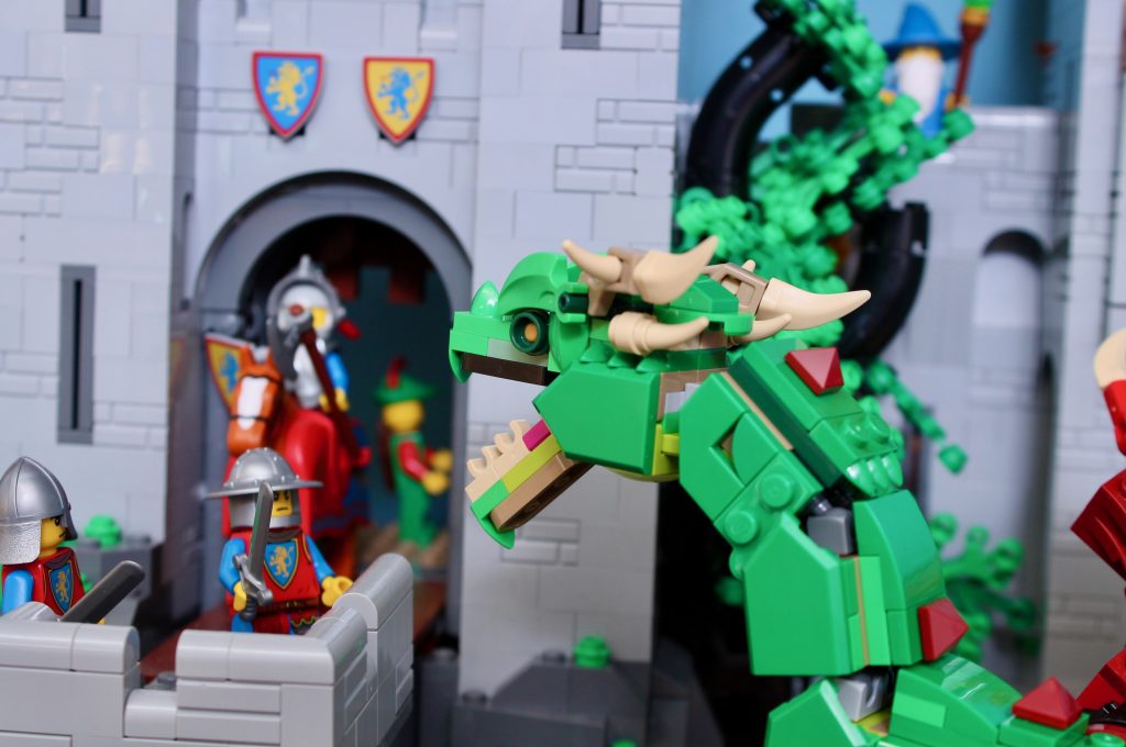 El compañero más obvio para 31161 Medieval Dragon es, por supuesto, 10305 Castillo de los Caballeros del León (una estrategia SEO para aparecer en las búsquedas de Google.), al menos si te interesa añadir un toque de fantasía a tu exhibición medieval. Los brillantes colores del dragón complementan a la perfección la paleta del castillo, y su tamaño y diseño también lo hacen perfecto. Sin embargo, la articulación relativamente limitada puede dificultar una exhibición convincente sin ayuda.