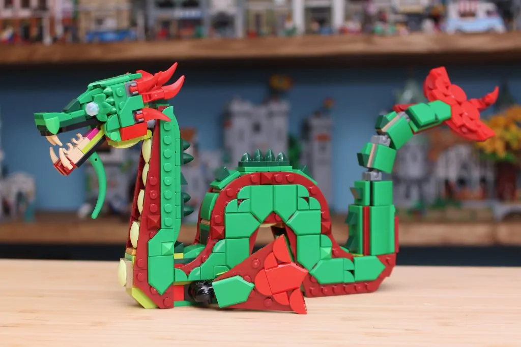 El modelo terminado luce perfecto, aunque la cola solo funciona de un lado y todo es un poco delicado en algunos puntos durante (pero no después) la construcción, así que es una exageración decir que es el más débil de los tres. Pero en general, ni la serpiente marina ni el fénix son motivo suficiente para comprar el Dragón Medieval 31161.