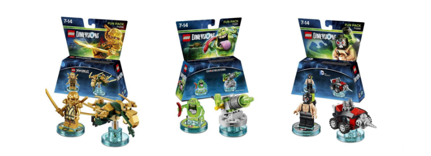 Estos Fun Packs completan las cinco primeras oleadas de expansiones de LEGO Dimensions, con muchas expansiones nuevas basadas en las marcas de entretenimiento más importantes del mundo que se anunciarán próximamente. El Starter Pack de LEGO Dimensions seguirá siendo la puerta de entrada a un sistema de juego que ofrecerá compatibilidad continua: todo lo comprado hoy y las expansiones que se añadan mañana seguirán funcionando juntas. ¡No se necesita tabla de compatibilidad!