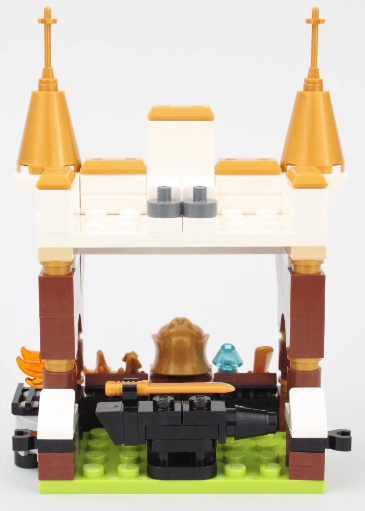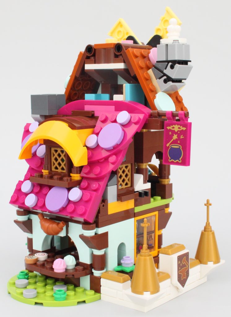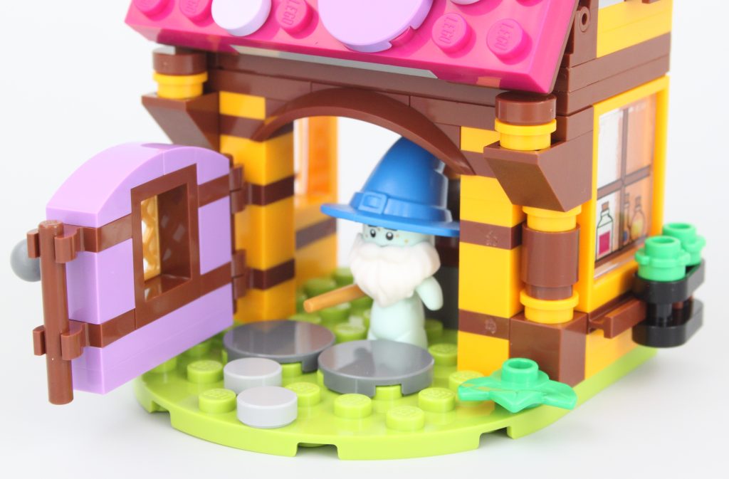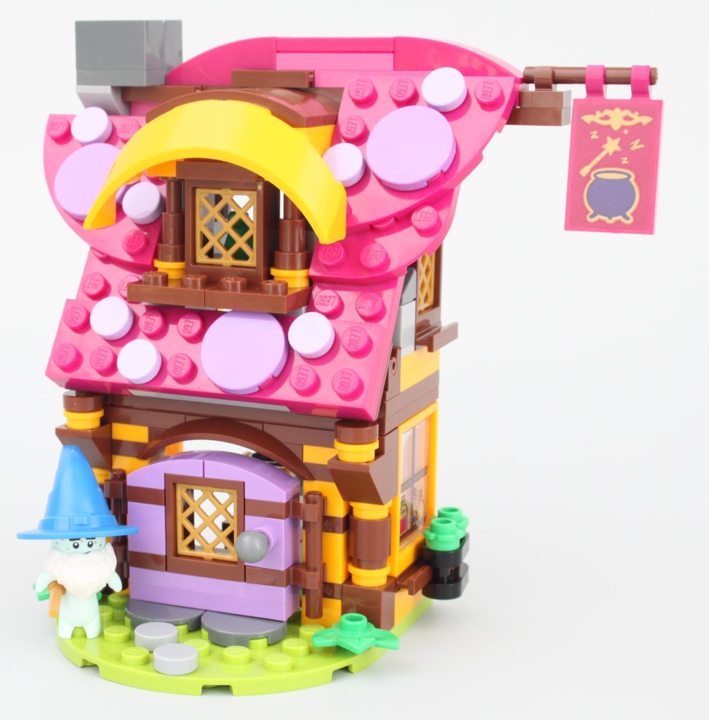 La puerta de la tienda de magia recuerda al 41185 Rescate Mágico de Goblin Village, al igual que el resto del modelo y sus impresiones generales. Sin embargo, se siente mucho más caprichoso que el set LEGO Elves retirado con una fracción de las piezas, completo con espacios interiores relevantes e incluso una cama del tamaño de Dreamling.