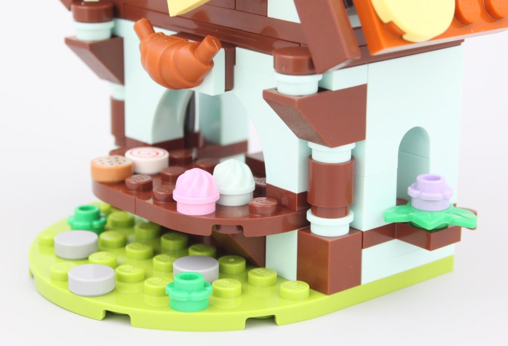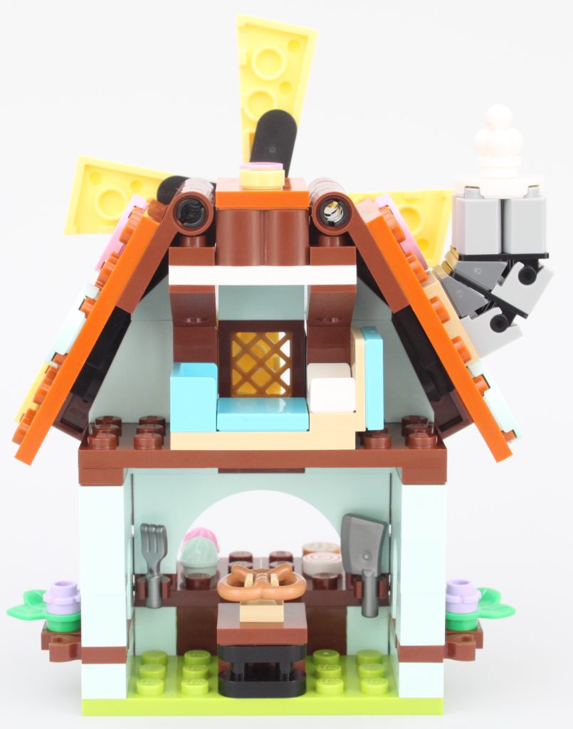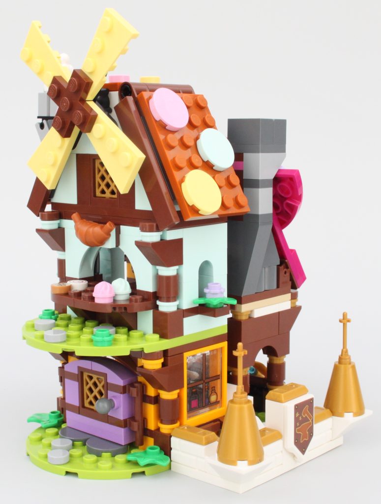 La panadería incorpora el segundo molino de viento en LEGO DREAMZzz junto 71459 Establo de criaturas oníricas, pero eso no disminuye su inclusión. El diseño es comparativamente más simple que el de la tienda de magia, aunque tiene una combinación de colores más extraña que lo ayuda a destacar gracias a sus paredes de color azul menta. Podría decirse que este edificio está un paso por debajo de la tienda de magia a primera vista, pero encaja perfectamente con el resto de 40657 Dream Village.