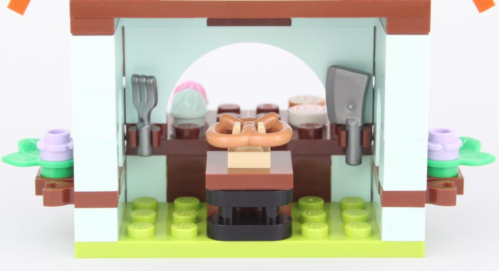 La tienda de magia se puede identificar por su letrero colgante con un diseño atractivo pero simple, así como por su techo color cereza brillante, con una ventana con una rana mirando a través de él. Hay una cantidad sorprendente de detalles teniendo en cuenta el espacio disponible, y aunque el parabrisas curvo que se usa en la ventana no es tan efectivo como nos gustaría con los espacios en los costados, sin duda es un aspecto fantástico para el primero de los tres edificios.