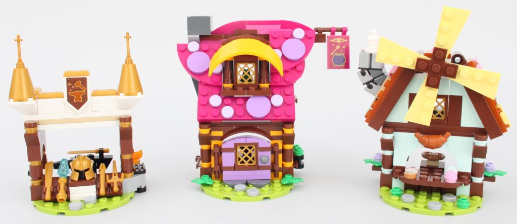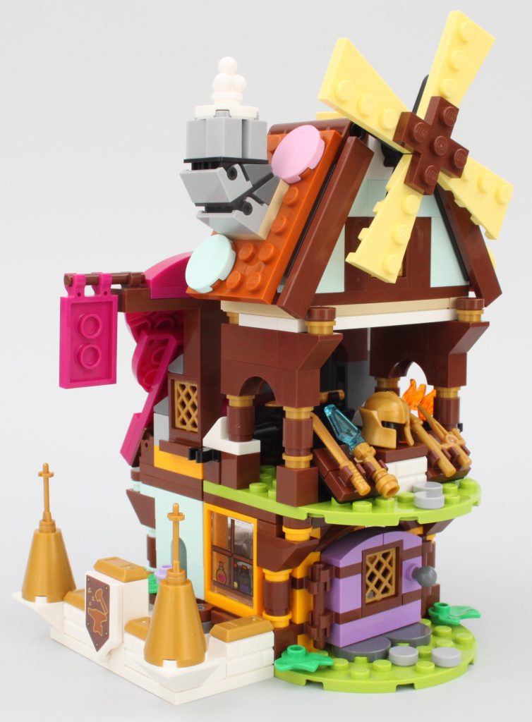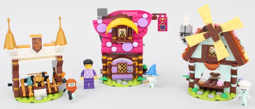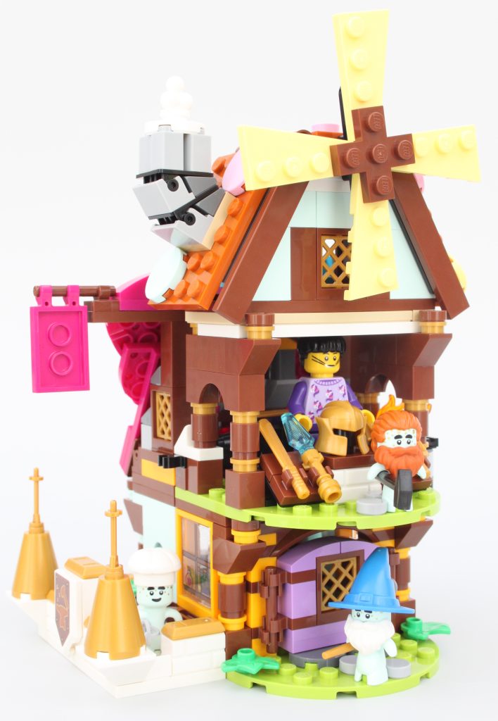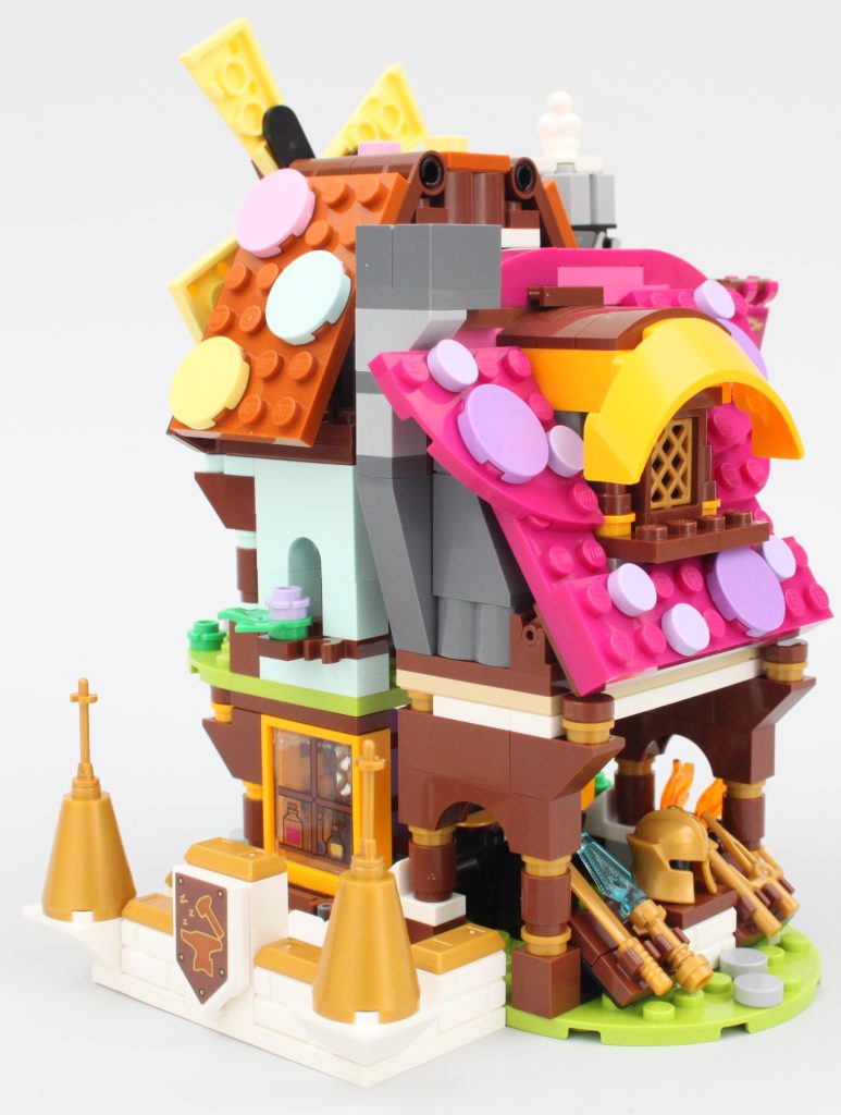 Pasar la singular minifigura a través de la puerta de la tienda de magia no es fácil, pero para ser justos, estos edificios están diseñados para Dreamlings. Mientras Jayden pueda acostumbrarse al tamaño de este pueblo, su sueño debería ser relajante con golosinas, pociones y armas en abundancia.