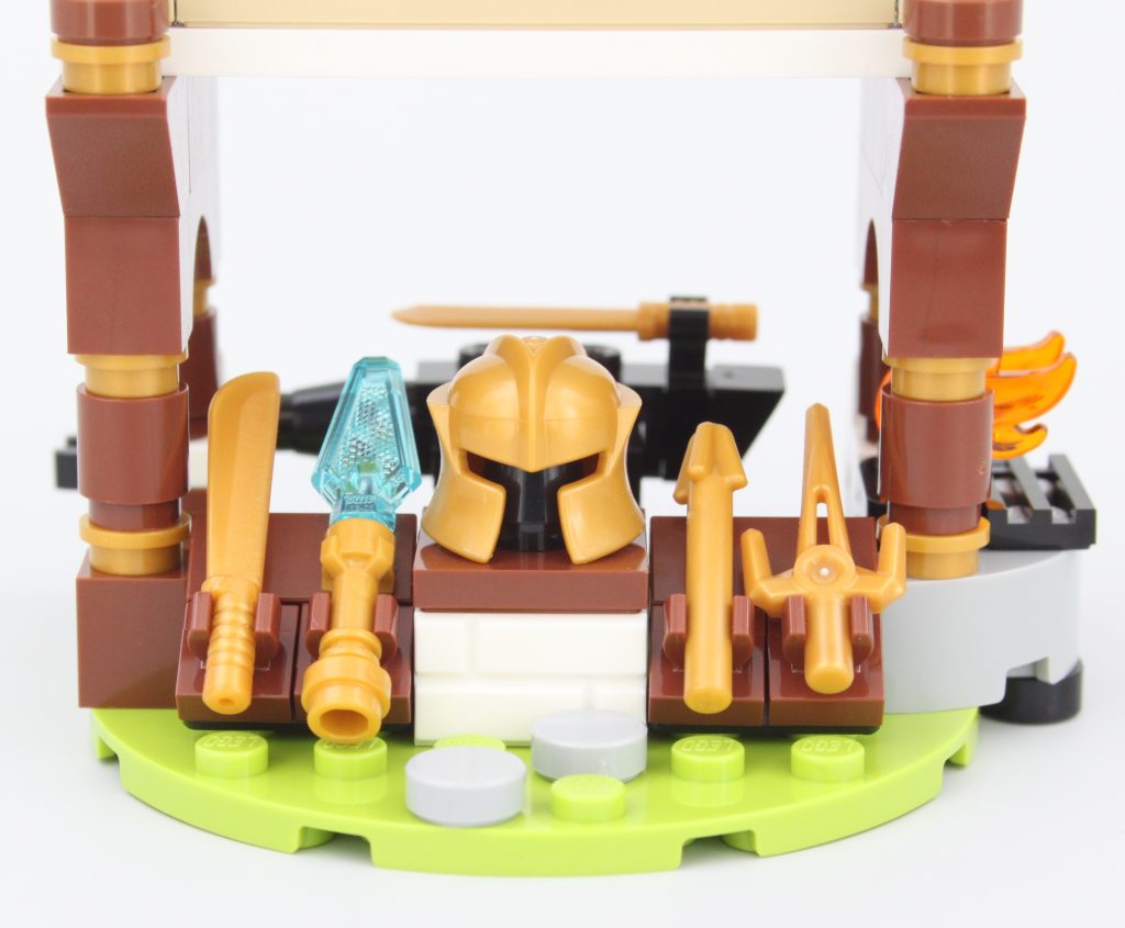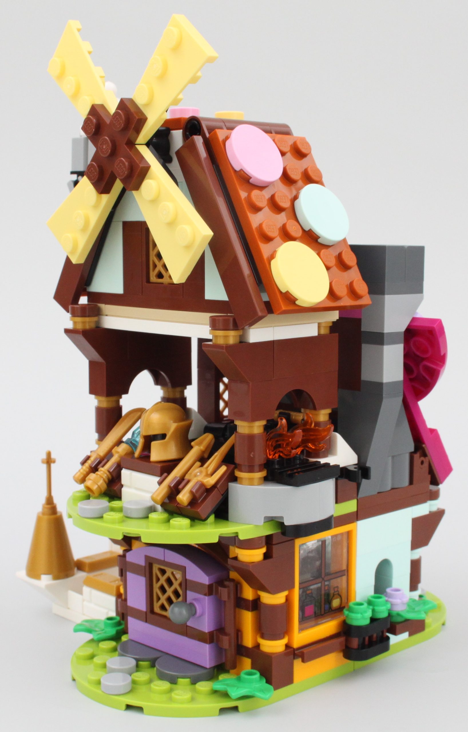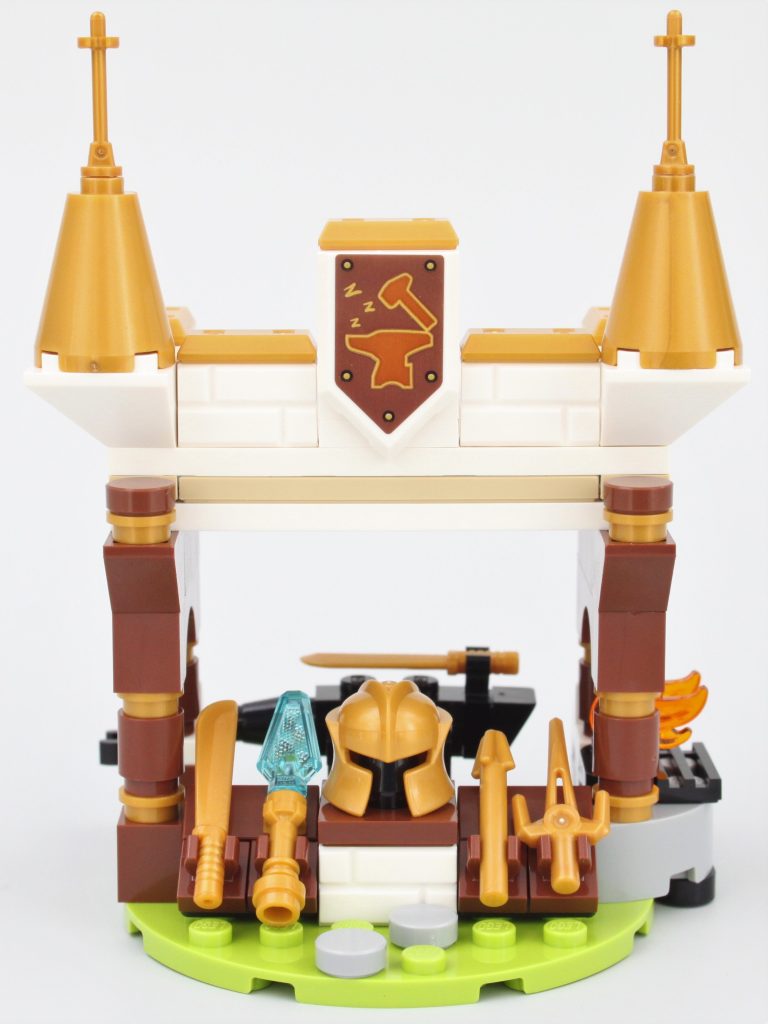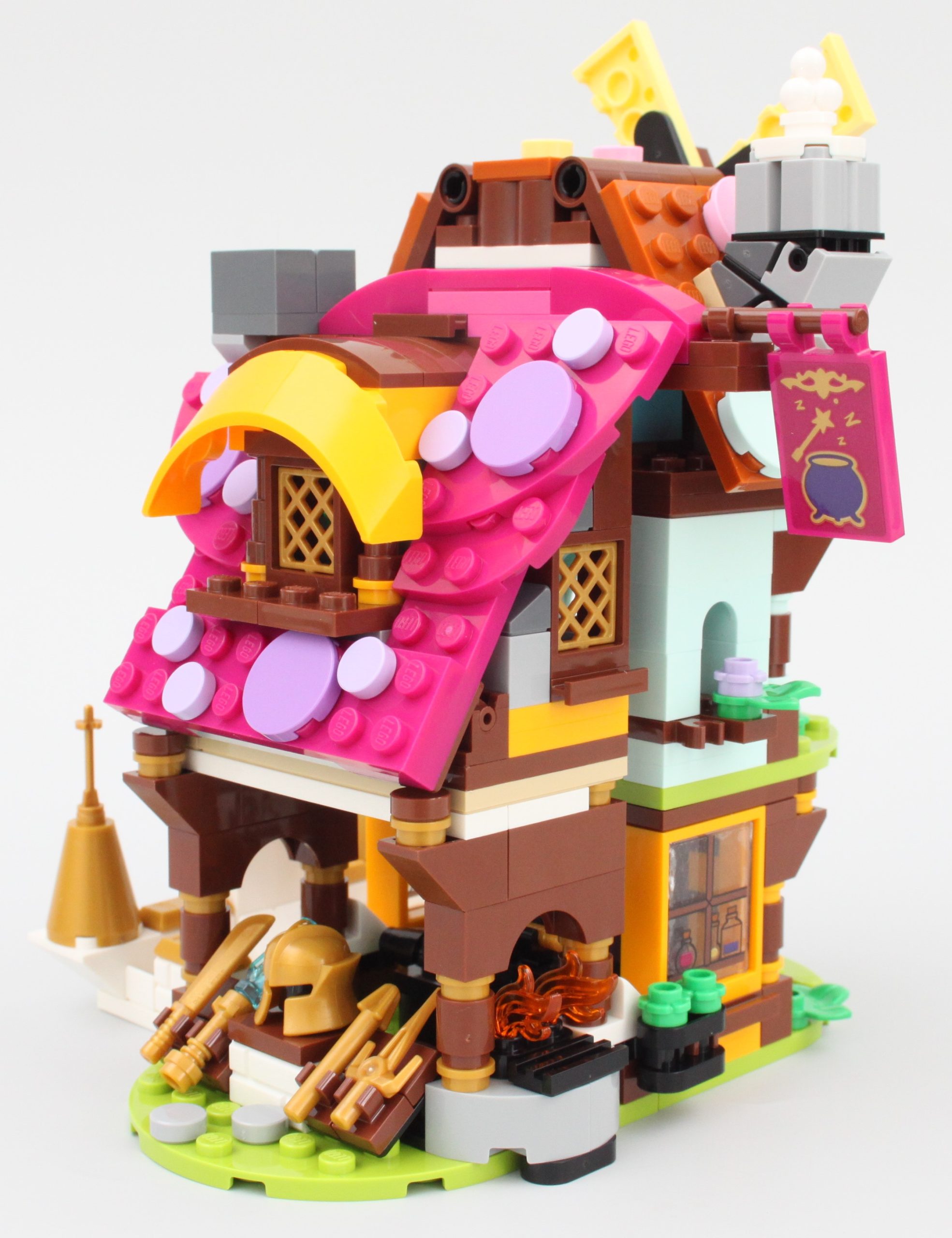 Pasar la singular minifigura a través de la puerta de la tienda de magia no es fácil, pero para ser justos, estos edificios están diseñados para Dreamlings. Mientras Jayden pueda acostumbrarse al tamaño de este pueblo, su sueño debería ser relajante con golosinas, pociones y armas en abundancia.