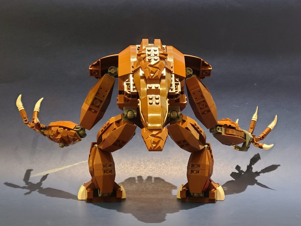 usuario de Reddit u / rossco311 no usó instrucciones ni siguió sus pasos mientras hacía su Rancor, pero compartió varias imágenes en línea. Está construido principalmente con ladrillos marrones, con piezas grises, blancas y crema para los detalles.