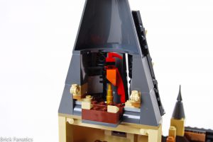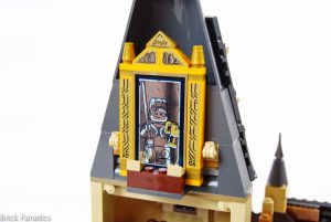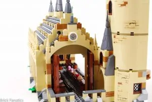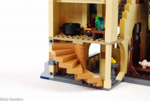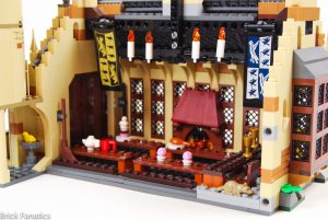 Se incluyen múltiples homenajes a versiones LEGO anteriores de Hogwarts, así como a las películas y los libros. El Gran Comedor luce espléndido con los nuevos elementos de ventanas enrejadas cuadradas, utilizados en abundancia, así como los nuevos componentes del candelabro. Los fans de cierta época recordarán con cariño los elementos de la escalera giratoria, creados para imitar los tramos de escaleras siempre cambiantes del castillo. Se incluyen aquí en color canela oscuro por primera vez. Las dos primeras entregas de la serie son las más referenciadas, con el Espejo de Oesed, el barco para los recién llegados, el paraguas de Hagrid y el Basilisco, que ocupan un lugar destacado en el set.