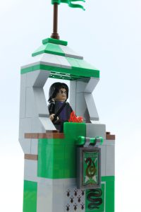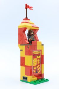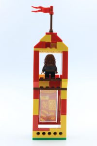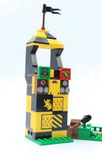 Solo se incluye la mitad del campo de Quidditch real, lo cual es un poco decepcionante porque solo se construyen los goles de un equipo. Los objetivos son una gran mejora con respecto a las iteraciones anteriores, utilizando ingeniosamente Technic neumáticos en oro perla. Se puede colocar un portero en un eje despejado, que girando una palanca en la parte trasera, puede girar para defender cada portería, lo cual es bastante divertido y muy efectivo.