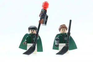 Los jugadores de Quidditch utilizan capas de tela y el nuevo molde de escoba en negro y marrón. Oliver Wood y Marcus Flint son actualizaciones mejoradas, con el capitán del equipo de Slytherin luciendo tan repugnante como lo hizo durante la primera película. Los tiradores son la amenaza de muchos LEGO conjuntos y el que está conectado a la escoba de Flint se ve completamente ridículo. Los diseñadores claramente intentaban emular cómo Flint deja inconsciente a Wood con una bludger, pero lo han hecho a expensas de la apariencia de la escoba.