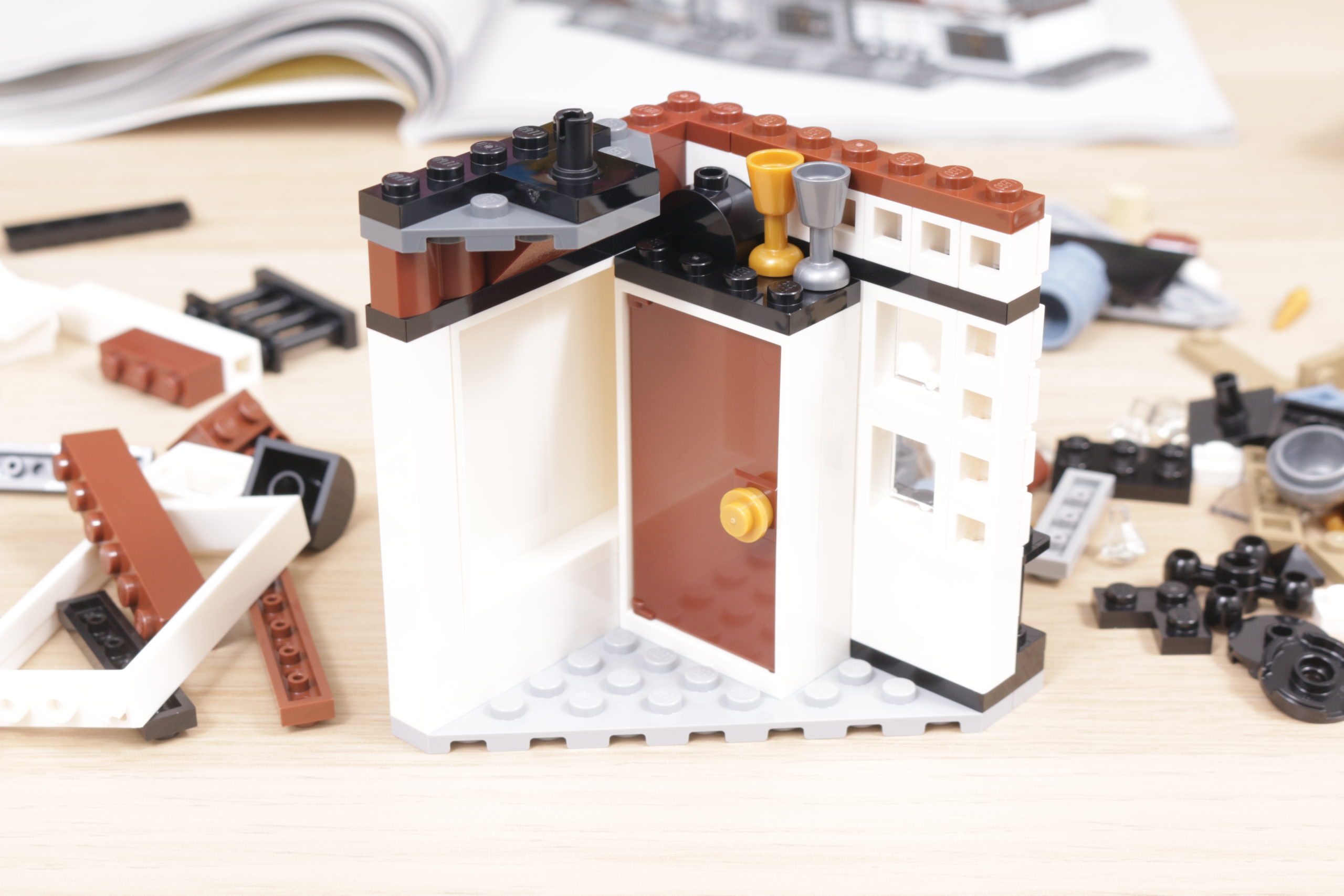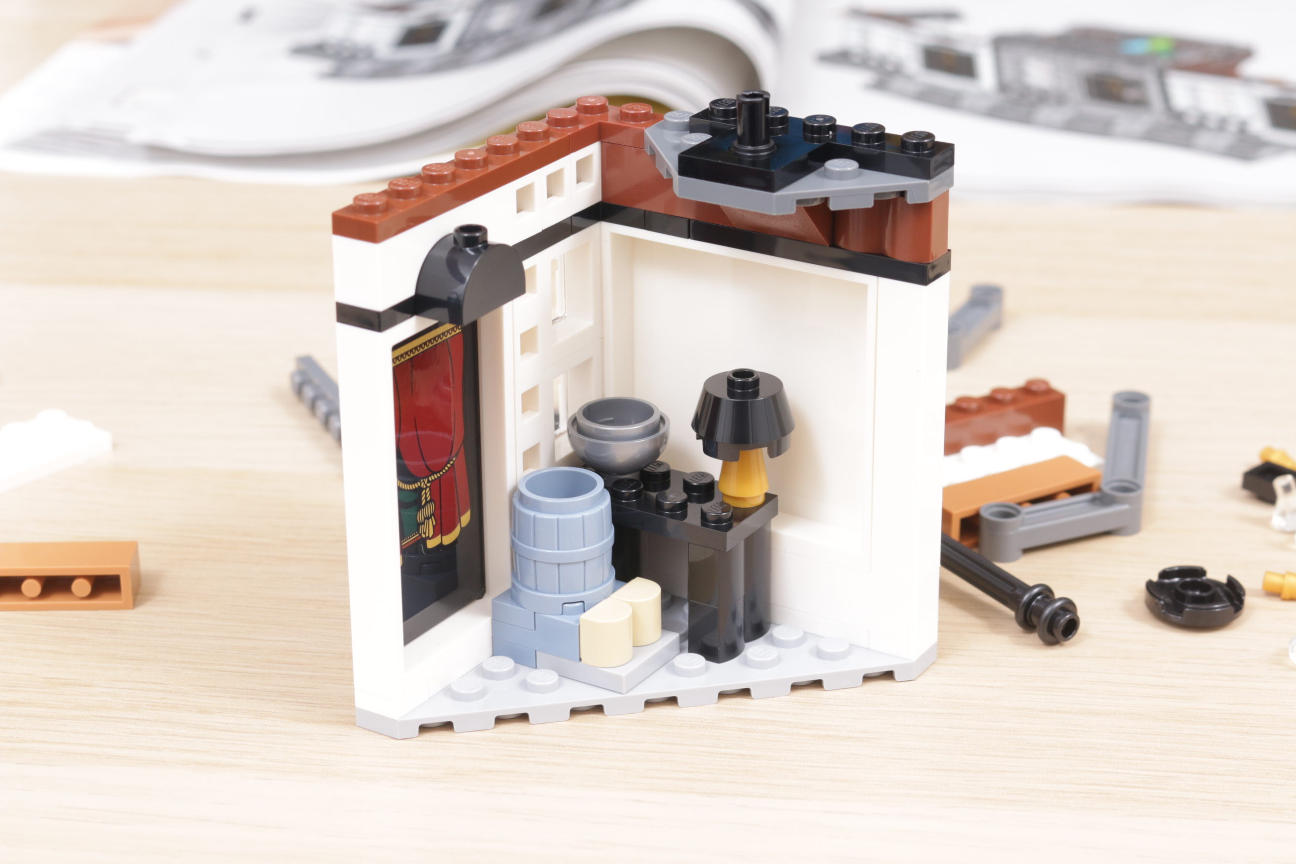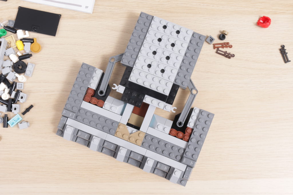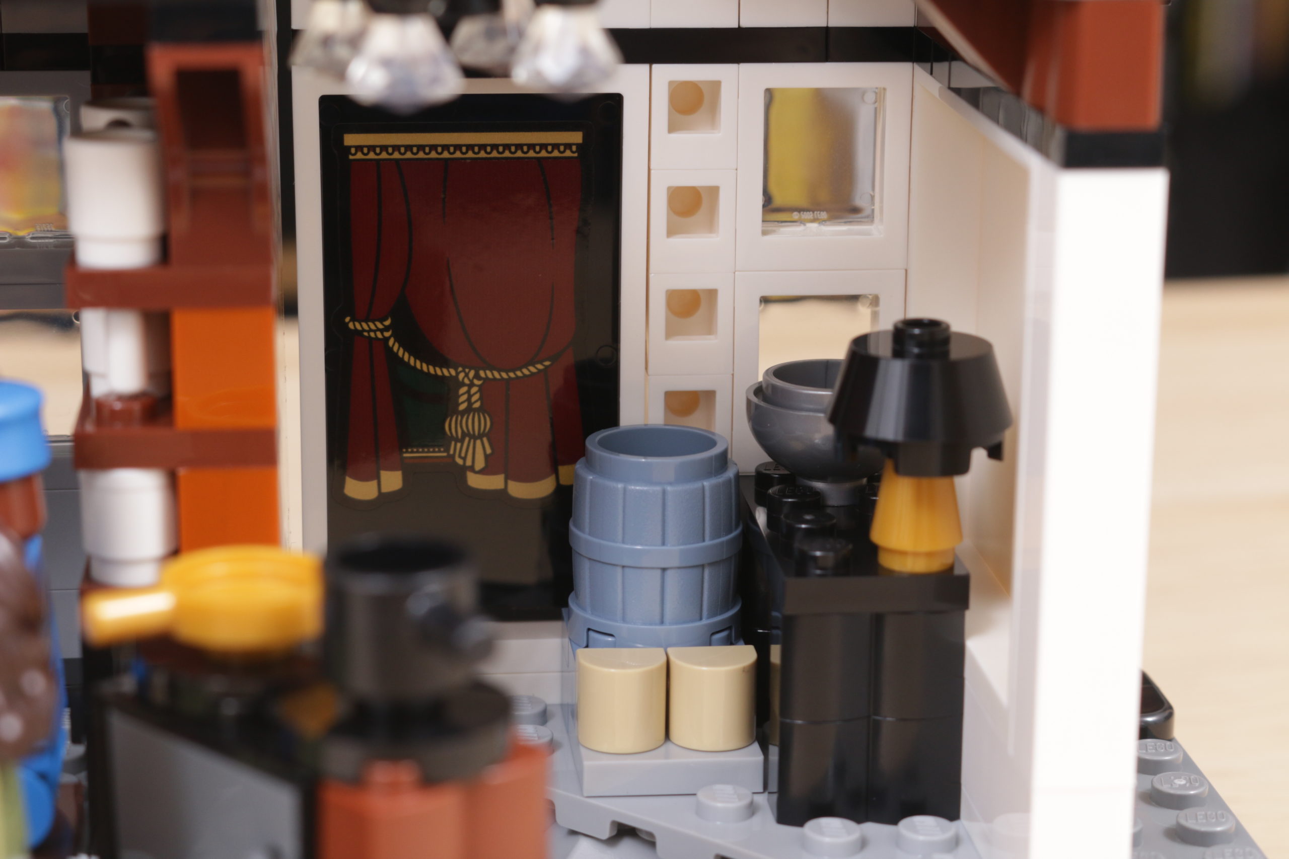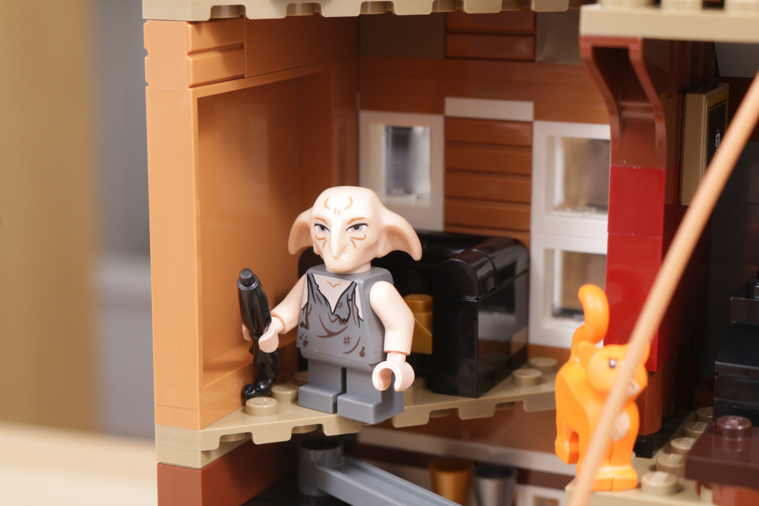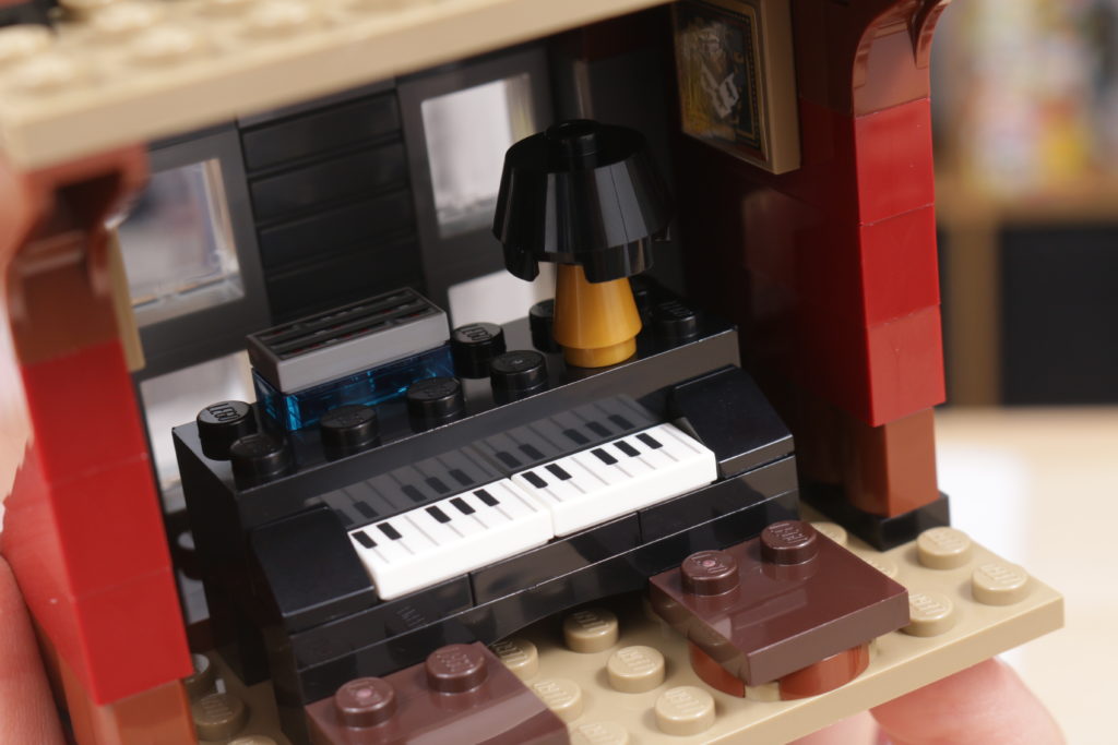 Este enfoque se extiende al interior del set, sobre todo en el tapiz del árbol genealógico de la familia Black, recreado con gran ingenio al más puro estilo LEGO en dos grandes pegatinas. La cocina de la planta baja, los dormitorios del tercer piso y los numerosos objetos dispersos, como esas pinturas espeluznantes, confieren al interior de la casa el carácter y la personalidad que evoca en la pantalla y en los libros. Las bases en ángulo, necesarias para plegar el interior cuando la casa se repliega hacia el interior, no deslumbra demasiado; de hecho, podrían acentuar la sensación de inseguridad, claustrofobia y sombríos que evocaba el número 12 de Grimmauld Place. Si falta algún detalle, sería algo que reflejara mejor el estado de abandono del lugar: objetos bajo las sábanas y telarañas en las esquinas dan una pista de cómo la casa estuvo desatendida durante 10 años antes del regreso de Sirius.