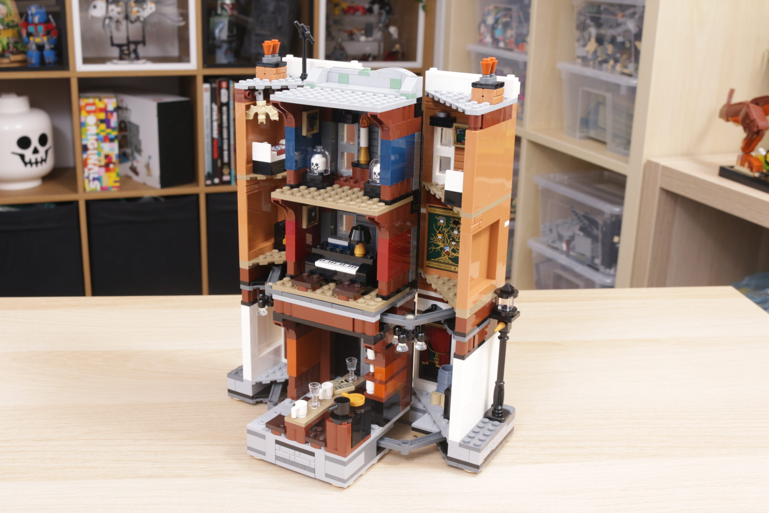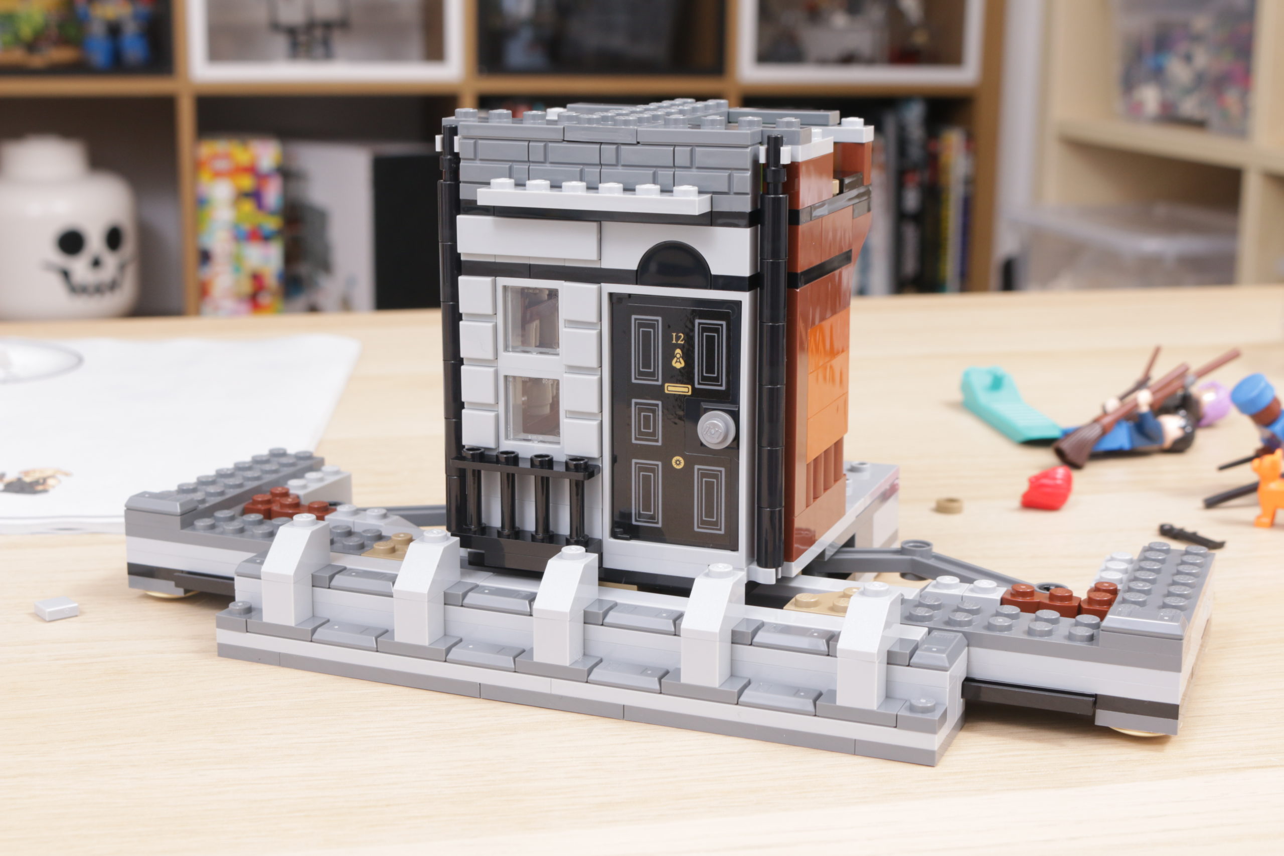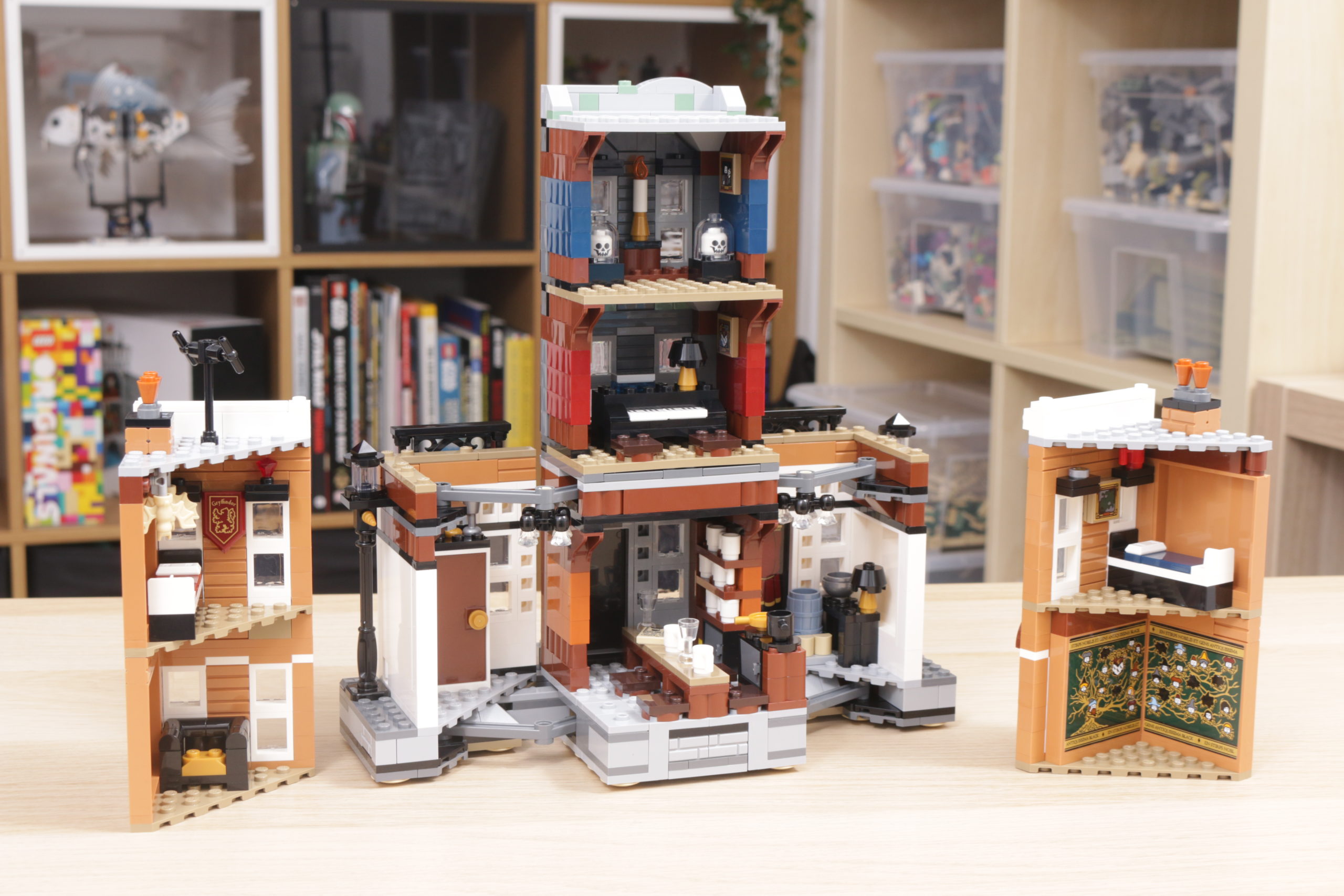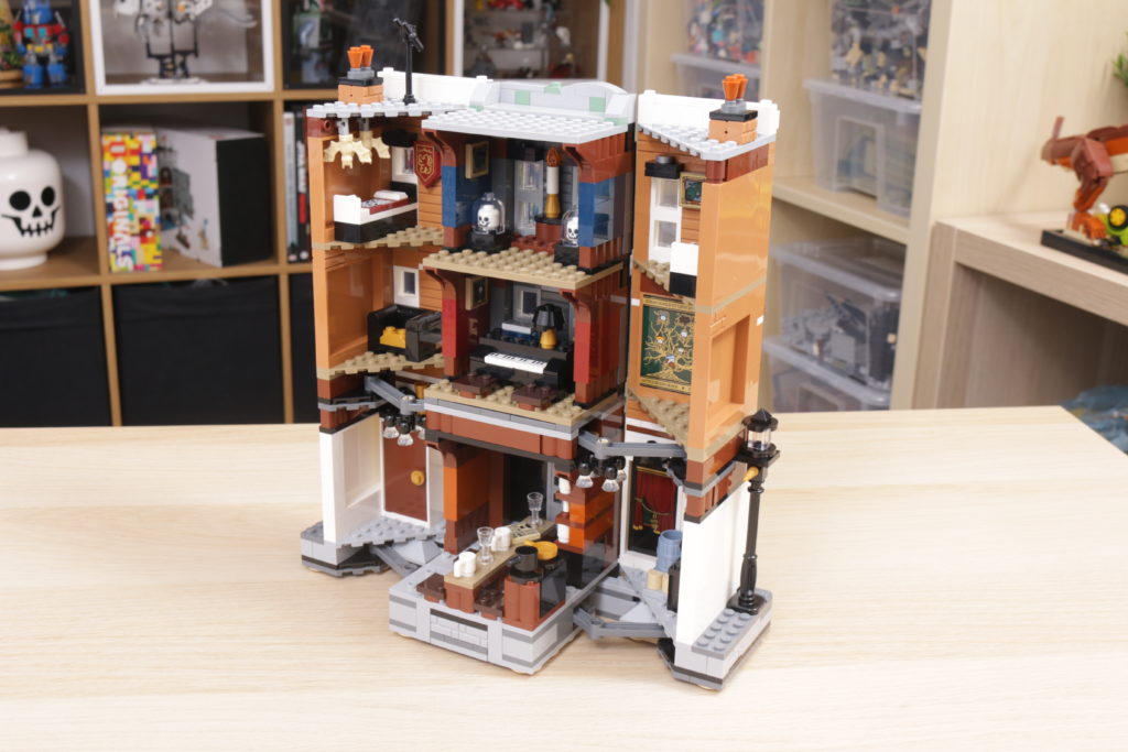 Es una característica relativamente simple, muy bien diseñada tanto en concepto como en la práctica, y esa simplicidad ayuda a garantizar que también sea estructuralmente sólida: tire de las farolas de cada lado para sacar 12 Grimmauld Place, o junte las dos terrazas exteriores para volver a empujarlo hacia adentro, sin esfuerzo y con suavidad.